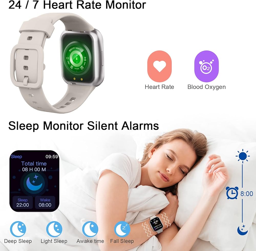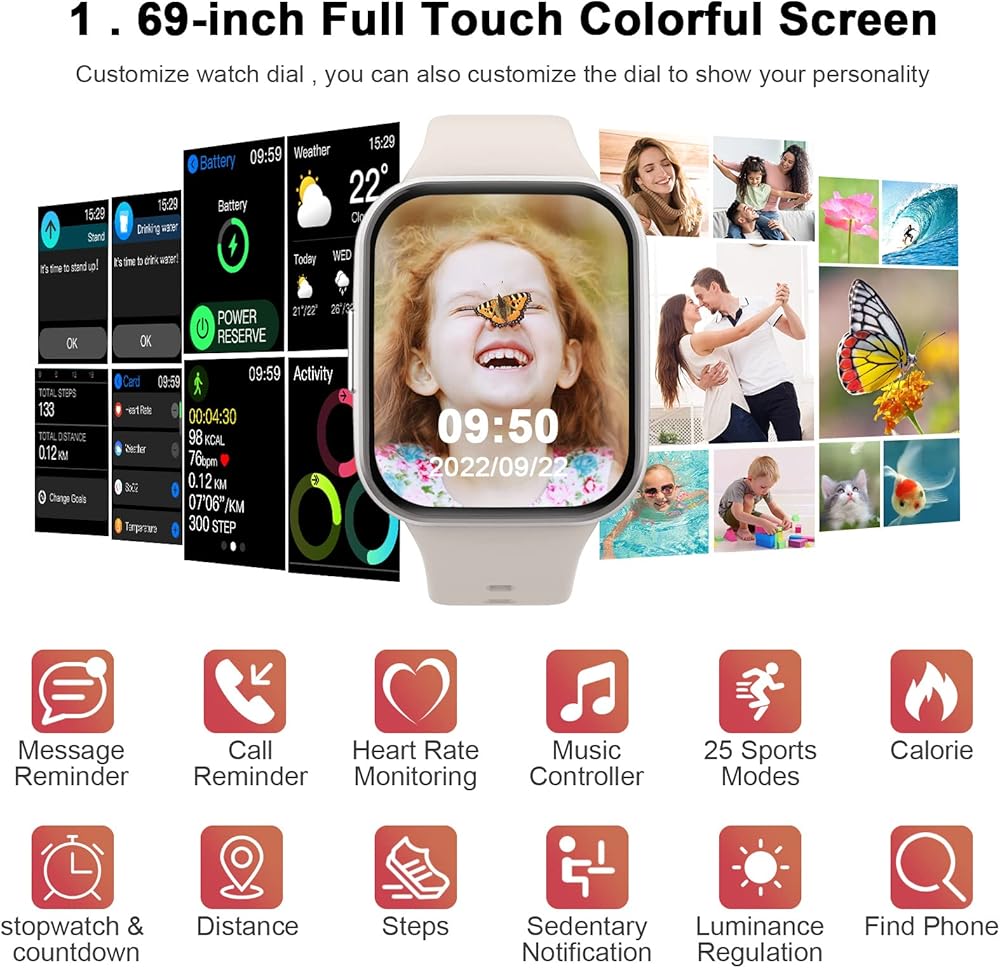 1.69'' HD Screen and Unlimited Customization: Smart watches for women with 1.69'' TFT-LCD high definition screen which making it easy to operate and sensitive, experience crystal-clear visuals like never before with. 4 level brightness adjustable allows you to read time and data clearly even under the glare. Beside, 100+ Multiple trendsetting combinations to match your mood and outfit of the day. Even create and customize your own fitness watch faces from your phone gallery.