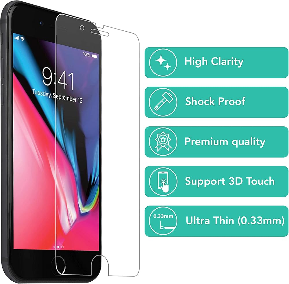 [SMART DESIGN] 4 Pack Precise laser cut tempered glass for iPhone and upgraded version is fully compatible with iPhone 8 & iPhone 7, iPhone Se2020, iPhone SE 2022 iPhone 6s/6 exquisitely polished and rounded edges. Oleophobic Coating magically resists oils and reduces annoying fingerprints. This is our best iPhone screen protectors.