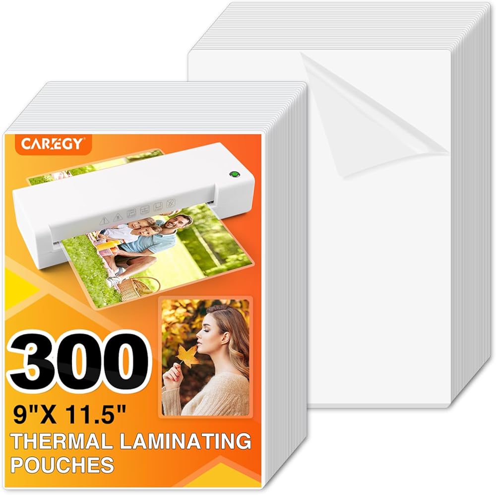 Laminating Pouches Dimensions: 300PACK , 9" x 11.5", thickness: 3 Mil.