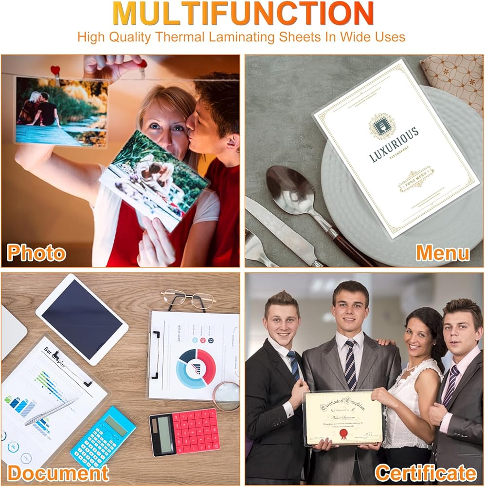 Application:Perfect for protecting certificates,signs,photos,awards,calendars,kids artworks.It can seal and protect your documents it can be used in classroom, home and office.Compatible with all thermal laminator machine brands