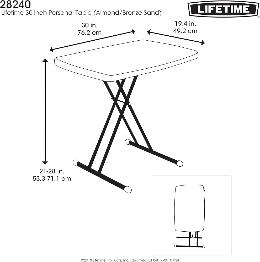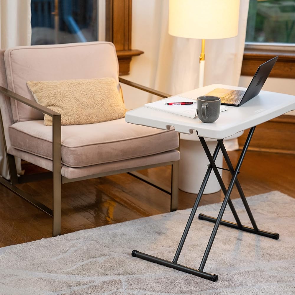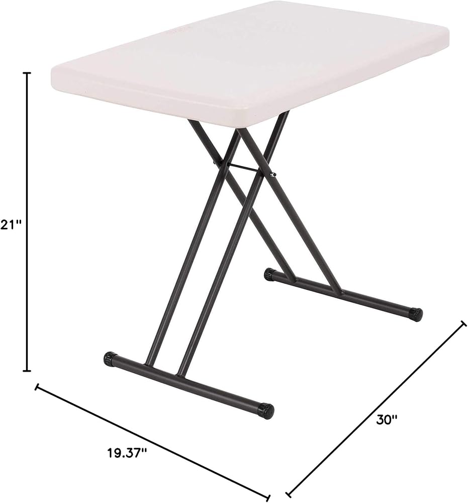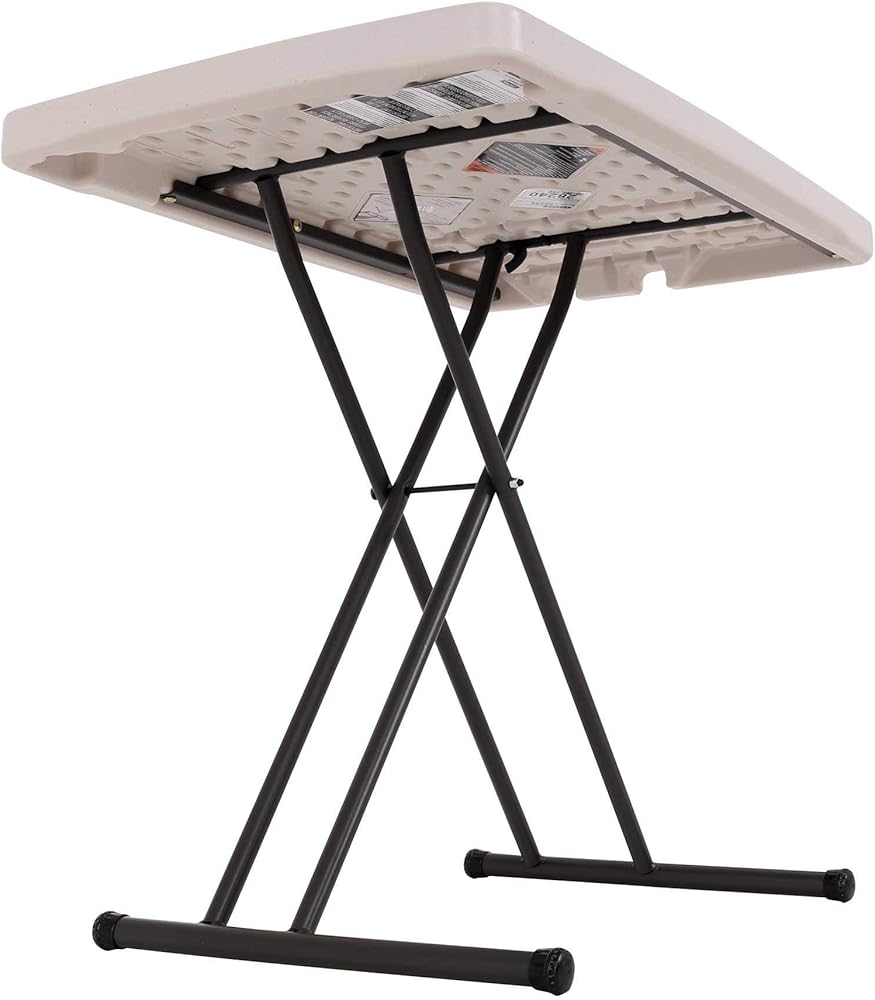 The Lifetime 30-Inch Laptop Table TV Tray is a versatile table that can be used for all occasions. Constructed with high-density polyethylene and designed for strength and stability. This table features four adjustable height settings from 21" to 28" for convenience. The steel frame design folds flat for easy storage and is protected with a powder-coated, weather-resistant finish. Built for indoor or outdoor use so that you can use this table anywhere!