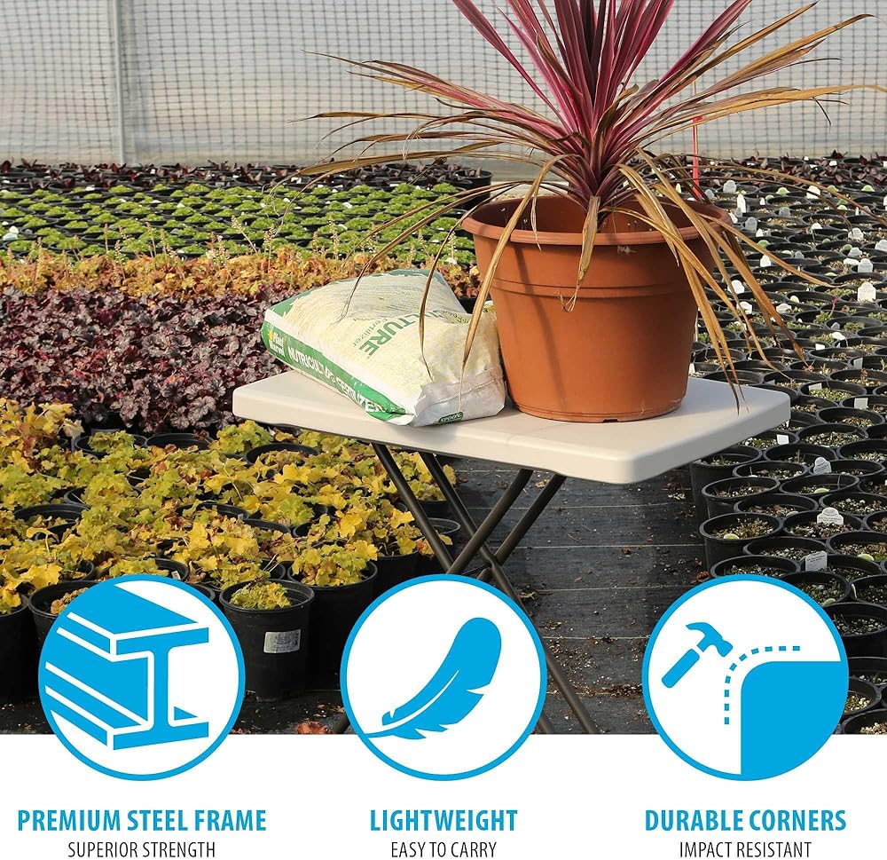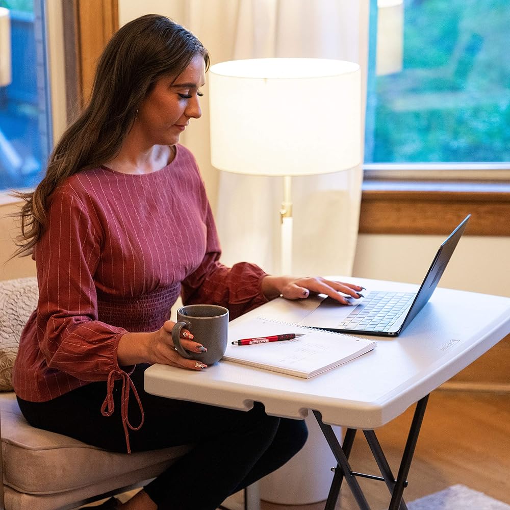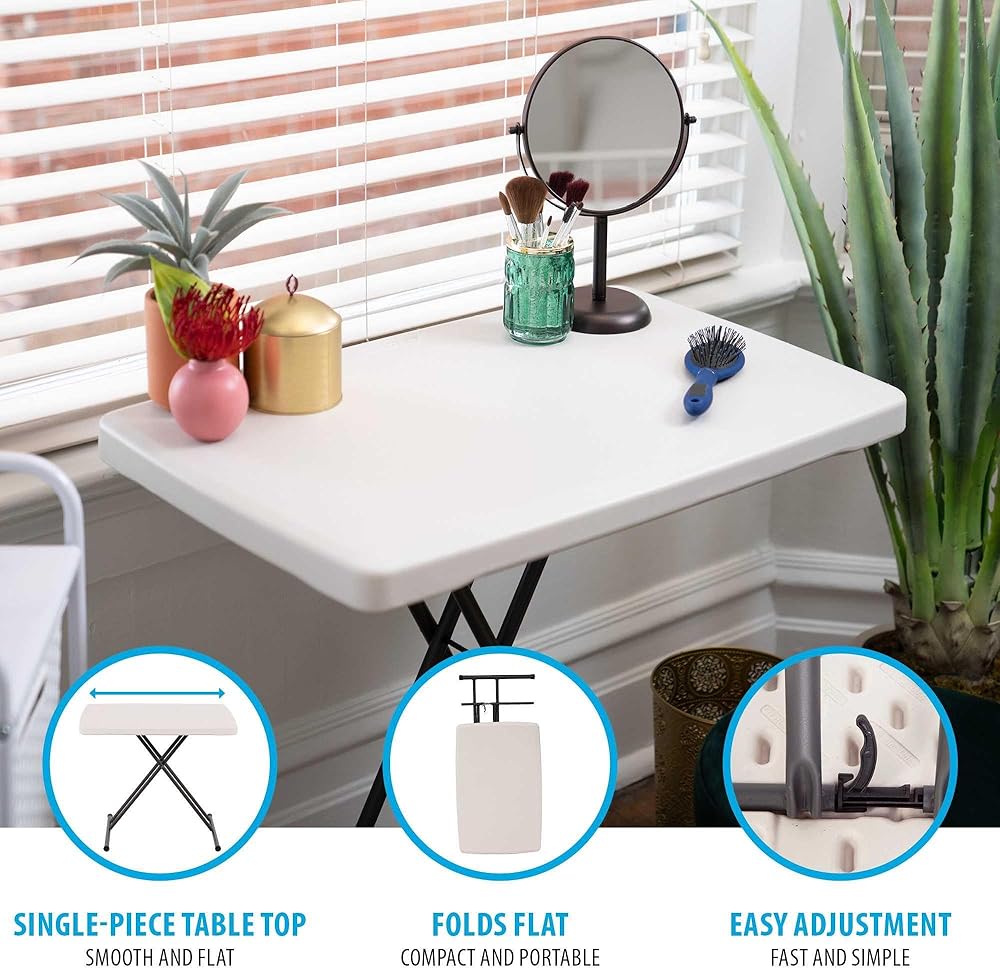 The Lifetime 30-Inch Laptop Table TV Tray is a versatile table that can be used for all occasions. Constructed with high-density polyethylene and designed for strength and stability. This table features four adjustable height settings from 21" to 28" for convenience. The steel frame design folds flat for easy storage and is protected with a powder-coated, weather-resistant finish. Built for indoor or outdoor use so that you can use this table anywhere!