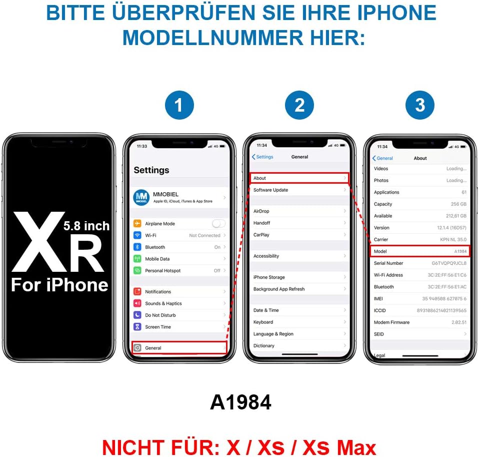 Compatible with iPhone XR A2105 A1984 A2107 A2108 A2106 Important: Please check the Model Number of your device before purchasing this Item. You can find the Model type of your device on your device and / or in the settings.