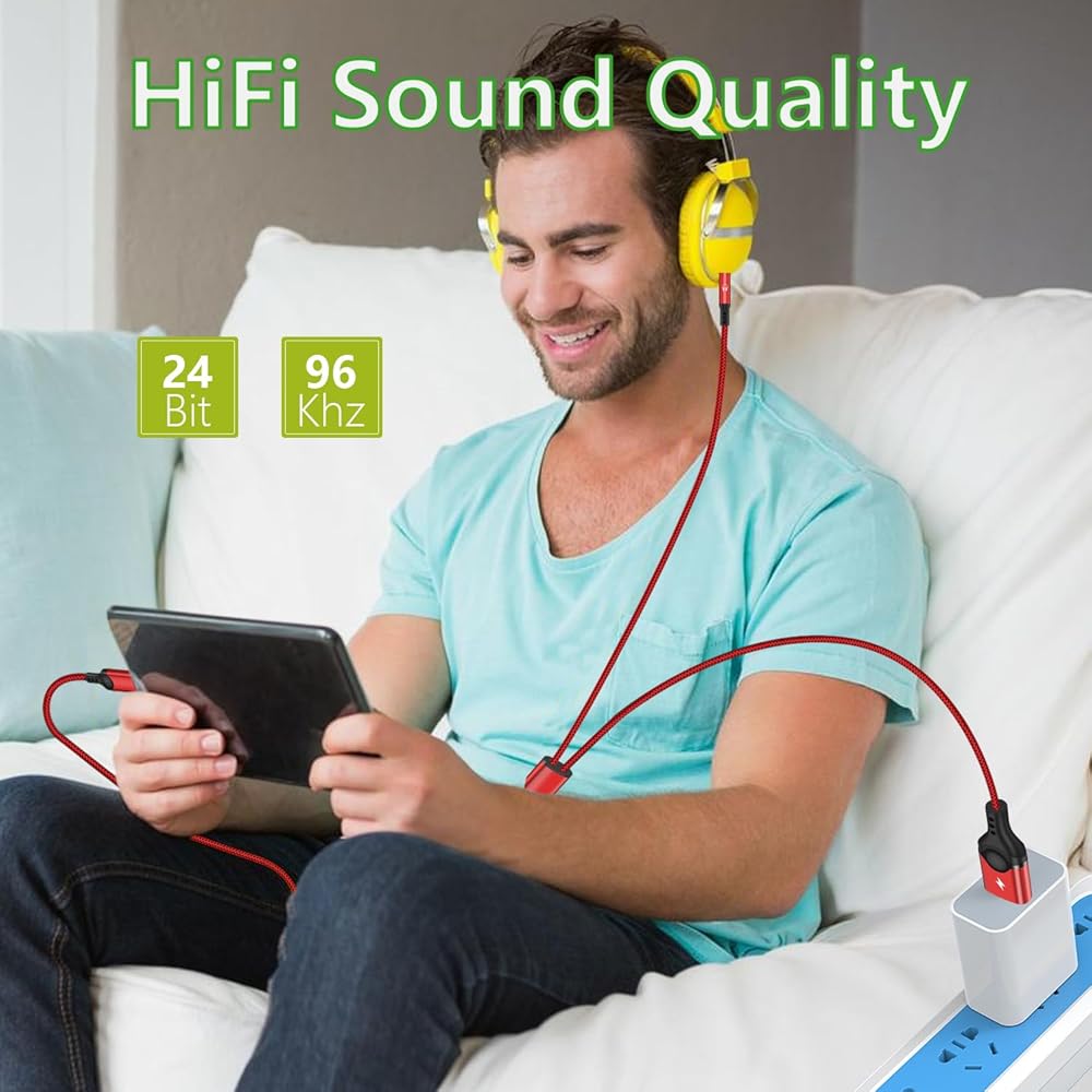The 2 in 1 design combines the usb c to 3.5mm aux cable and usb c charging cable into one cable, we offer a reasonable price for 2 cable in one.