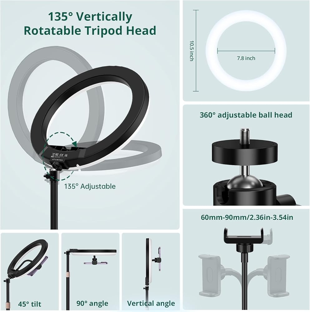 ATUMTEK Selfie Ring Light with Desk Stand and Phone Holder, 10" Desktop LED Circle Light for Laptop, Computer Ring Light for Zoom Meeting, Conference Lighting, Live Streaming, Makeup, TikTok, Vlog