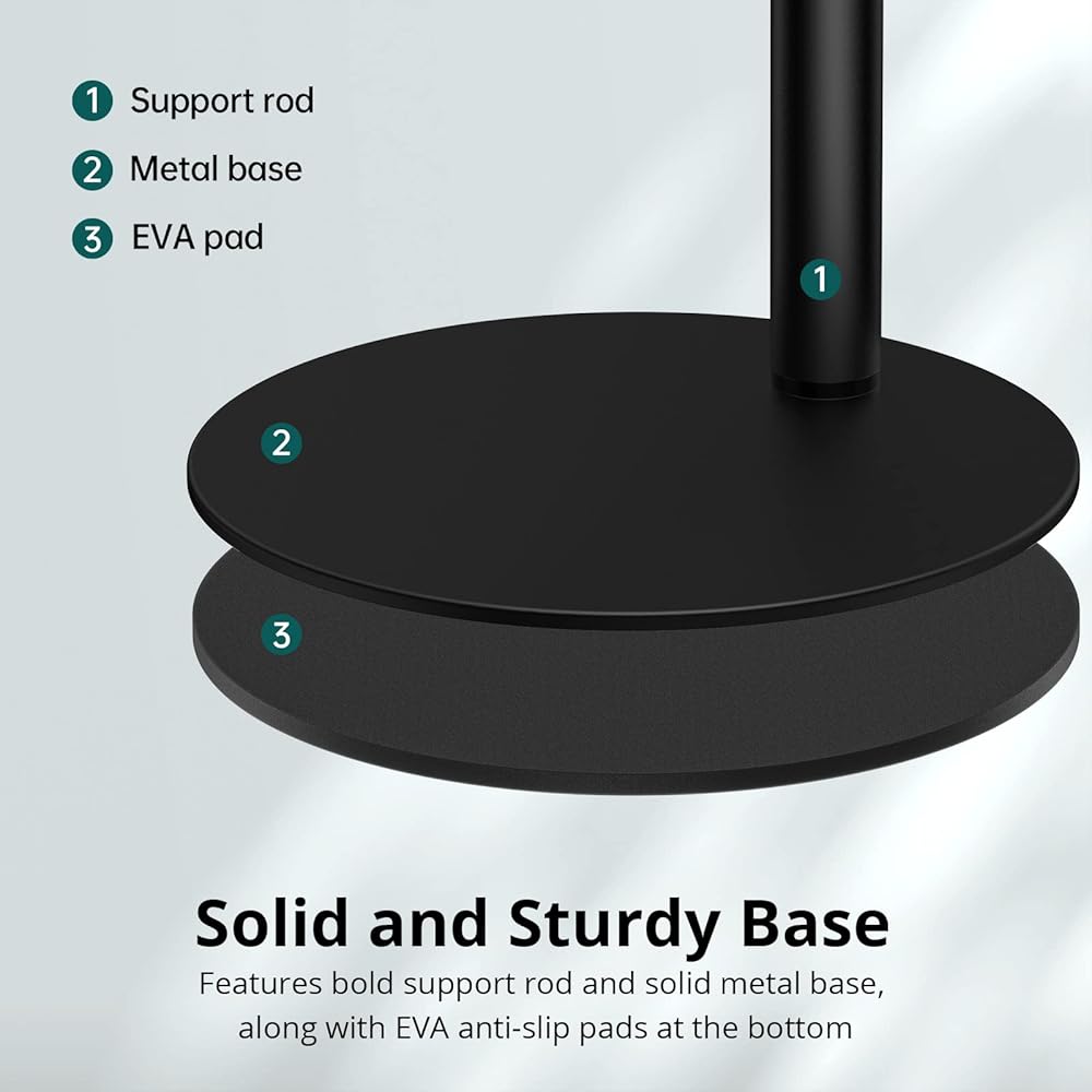 [Stable and Secure] Bold support rod, solid metal base, and EVA anti-slip pads prevent table scratches.