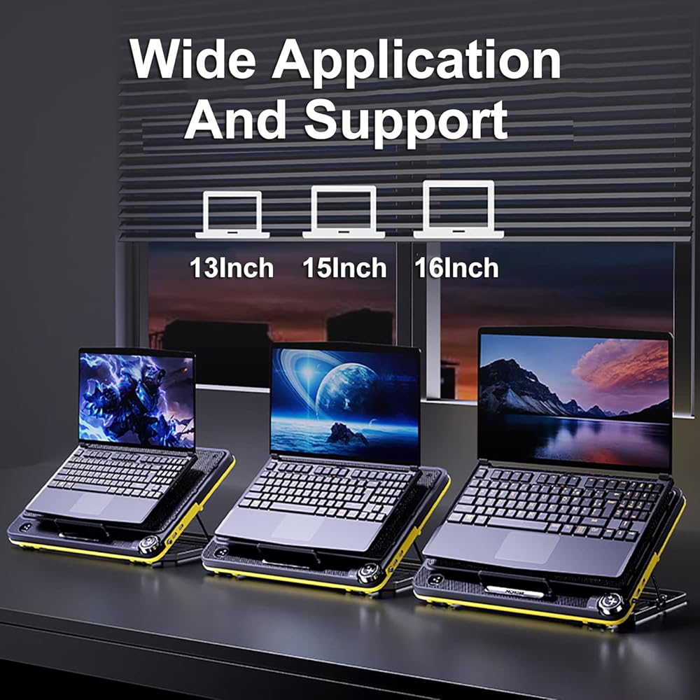 cooling pad for laptop four large fans provide superior airflow at whisper quiet noise levels, spinning at just over 1,000-2400 RPM. The LIENS 11"-17" cooling pad laptop provides a strong air flow allowing you to work all day without making any noise and interrupting your flow.