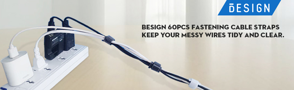 Besign 60 Pack Fastening Cable Straps, Reusable Cord Organizer, Keeper Holder, Cable Ties for Earphones, Earbuds, Headphones, Home Office Tablet, PC, TV Wire Management, Black and White
