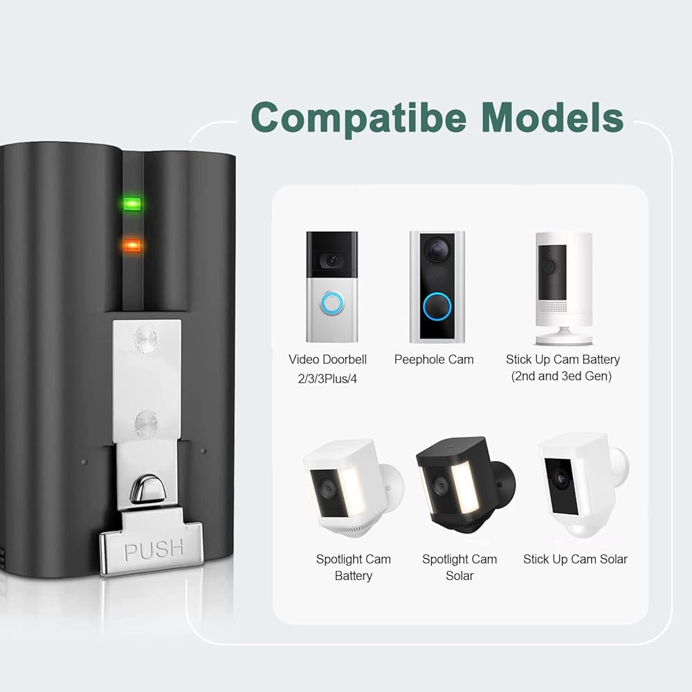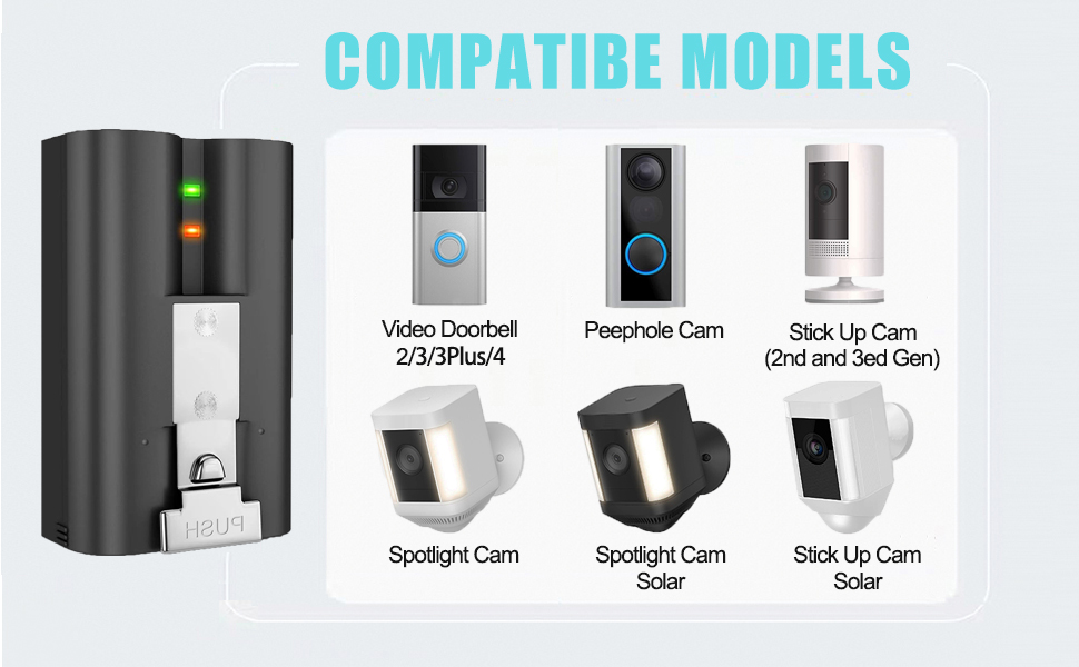 【FULLY COMPATIBLE】The Ring replacement battery 100% Compatible with Ring-Doorbell Camera 2/Ring-Doorbell Camera 3/Ring-Doorbell Camera 3plus/Ring-Doorbell Camera 4 ,Spotlight Camera and Stick Up Camera(2nd and 3rd GEN) .And we test every lithium ion cell in professional equipment and international way.