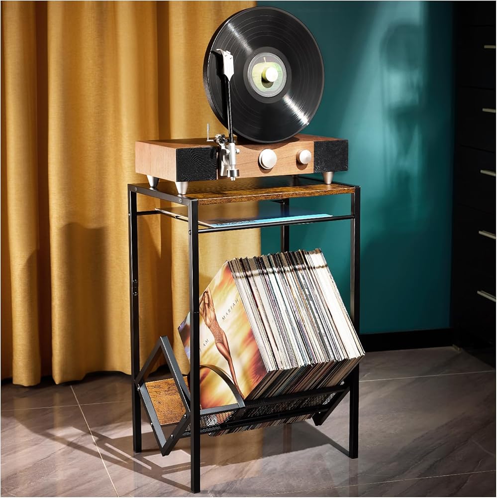 【Record Player Stand Structure】record stands provides 2 compartments, the top layer can accommodate most types of vinyl record players, the second layer stores no less than 80 vinyl records, the V-shaped design not only helps you access more easily Vinyl records, can also better protect your records.