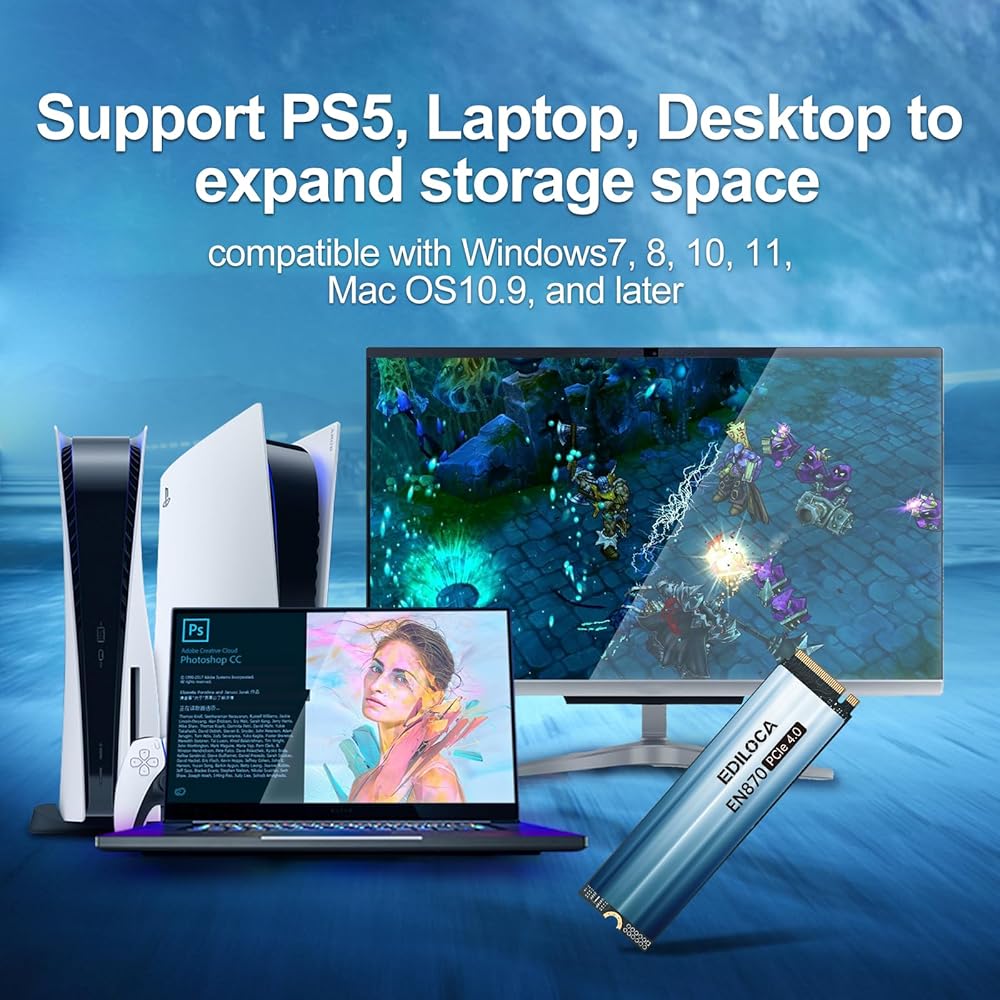 【Widely Compatible M.2 SSD】This PCIe 4.0 NVMe SSD comes in a compact M.2 2280 form factor, which facilitates efficient and powerful systems. Compatible with PS5, laptops, desktops and all-in-ones. The EN760 Internal SSD's thermal control, high-performance bandwidth, and sustainability meet the needs of running large-scale applications, making it ideal for gamers, technicians, and designers.