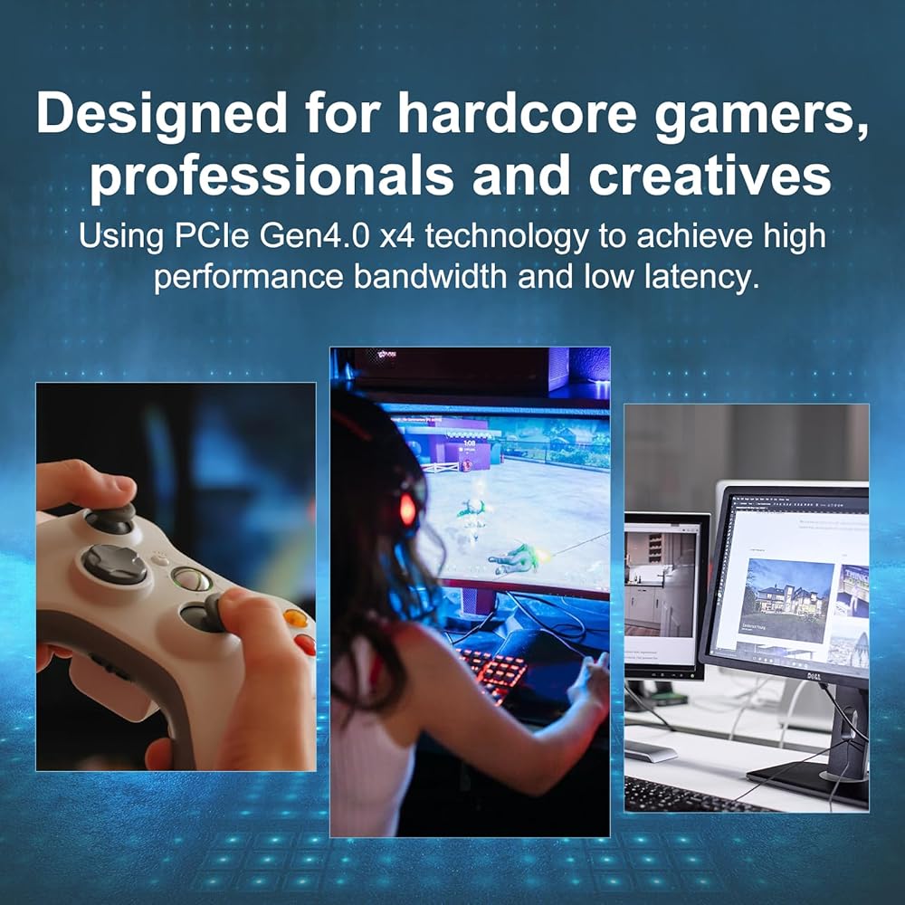 【Support PS5, PC to expand storage space】Expand your PS5 storage space for more game content storage with this PCIe Gen4 x4 SSD. Equipped with an aluminum heatsink, perfectly compatible with PS5. The heatsink disperses heat to maintain speed, power efficiency, and thermal control, preventing Playstation 5 and PC performance degradation due to overheating, ideal for building high-performance PC computing and gaming systems.