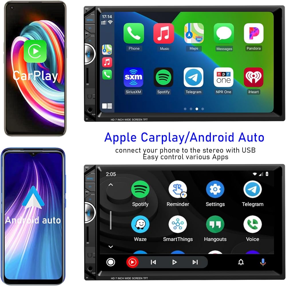 Double Din Car Stereo Apple Carplay 7 inch Car Radio with HD Touch Screen Digitial Receiver Compatible Android Auto Bluetooth with Backup Camera Mirror Link USB/SD/AUX