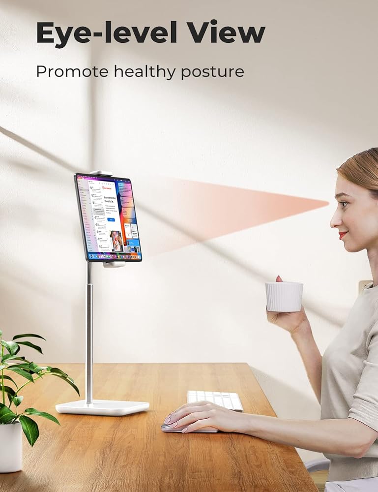 Neck and Shoulder Relief: Prevent neck and shoulder pain caused by looking down at your iPad, this ergonomic tablet stand frees your hands and elevates your device to a comfortable height and angle, promoting a healthy posture and reducing muscle strain.