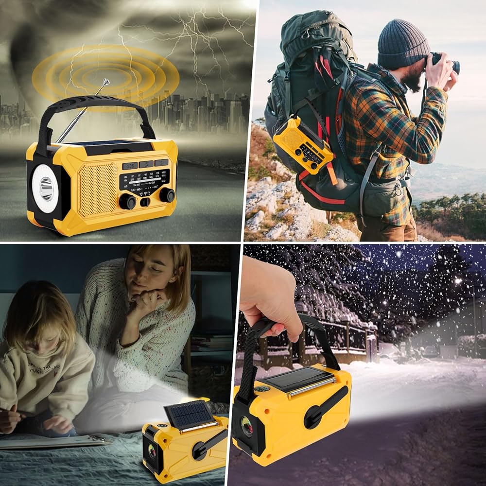📻【10000mAh Power Bank】When we are trapped in trouble, this emergency hand crank radio with a 10000mAh emergency power bank may be our life-saving tool. The hand crank emergency radio works with most USB-powered devices, which can charge 2.5 times your phone when the NOAA weather alert radio is fully charged. The solar powered radio with hand crank has enough emergency power for important calls to your family, the emergency services, or for contacting assistance in emergency situations.