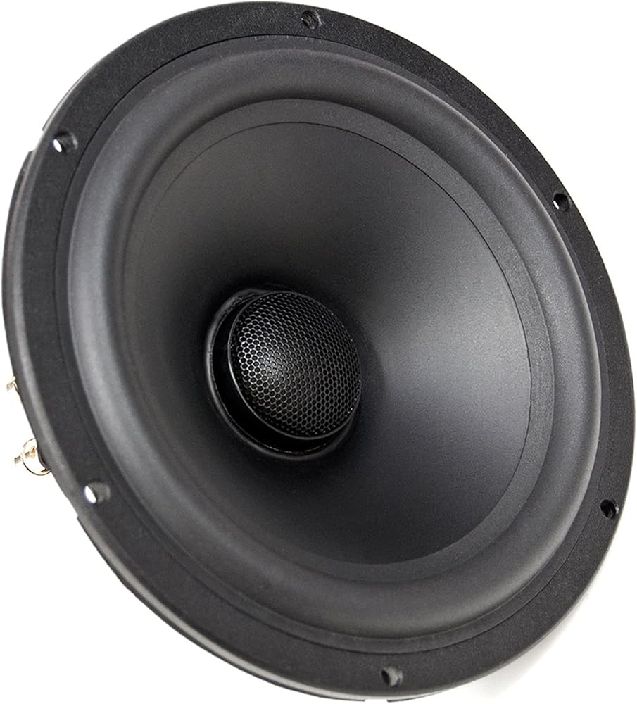 Luccent sound quality is smooth and seductive with plenty of dynamic punch. Bass is fast, extended and energizing. The sound stage is huge and significant so that the listener feels as if they are hearing it live. Luccent Cone Material - The Luccent cone is comprised of critically damped black polypropylene with deep cone geometry for maximum stiffness. Its profile is curved shaped to offer a smooth high frequency response that will blend effotlessly with the response of the tweeter. Also features a long life rubber surround for smooth frequency response with long linear stroke for low distortion. Polymer Damped Aluminum Tweeter - A high end polymer damped aluminum dome tweeter that is truly the best of both worlds as it sounds smooth like the best silk dome while having the high detail and low distortion of the best metal dome. This tweeter is extremely musical and never fatiguing. A rear chamber heat sink gives high power handling capacity to allow a 2000 Hz Crossover Frequency. Coincident Tweeter Mounting - A coincident tweeter is mounted directly on the pole piece of the woofer. This allows it to be perfectly time aligned with the woofer and takes advantage of the woofer cone boundary as a natural wave guide. Features - Free Air Resonance: 68.19 Hz Nominal Impedance: 4 Ohms Sensitivity 2.83 v @ 1 meter : 89.1 Outside Diameter: 166.5 mm Mounting Hole Diameter: 137.4 mm Mount Depth: 80.3 mm Point Source Tweeter 25 mm silk dome Bi Amp 12 dB crossover Maximum Linear Excursion: ± 7.7 mm Parameters - Fs: 68.19 Hz Re: 2.93 Ohms Qms: 10.33 Qes: 0.79 Qts: 0.73 Le: 0.20 mH Vas: 6.69 Liter Mms: 18.95 gram Cms: 287 uM/Newton BI: 5.5 Tesla-M SPLref: 89.1 (2.83 volts at 1 meter) Sd: 128.7 sq cm Xmax: 7.7 mm Xsus: 12 mm