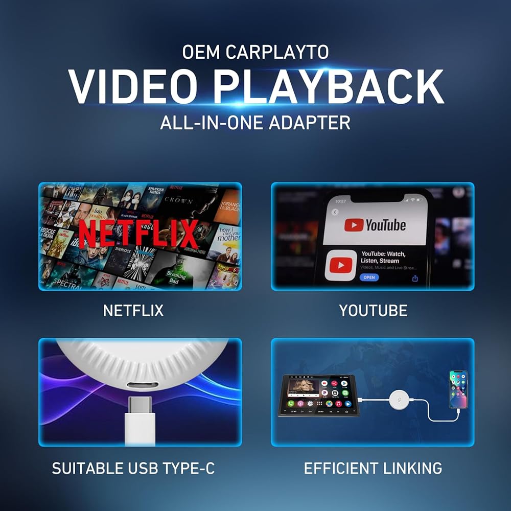 Compatibility: 2016+ wired Carplay cars will work, can watch Youtube, TV news, photos, navigation and HD video.