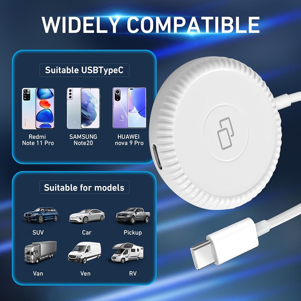 EASY TO USE: We make connection quick and easy with just 2 simple steps. Plug and play without any additional drivers or applications to install. Connect the mobile phone first, and then connect to your car's central control to complete the connection.