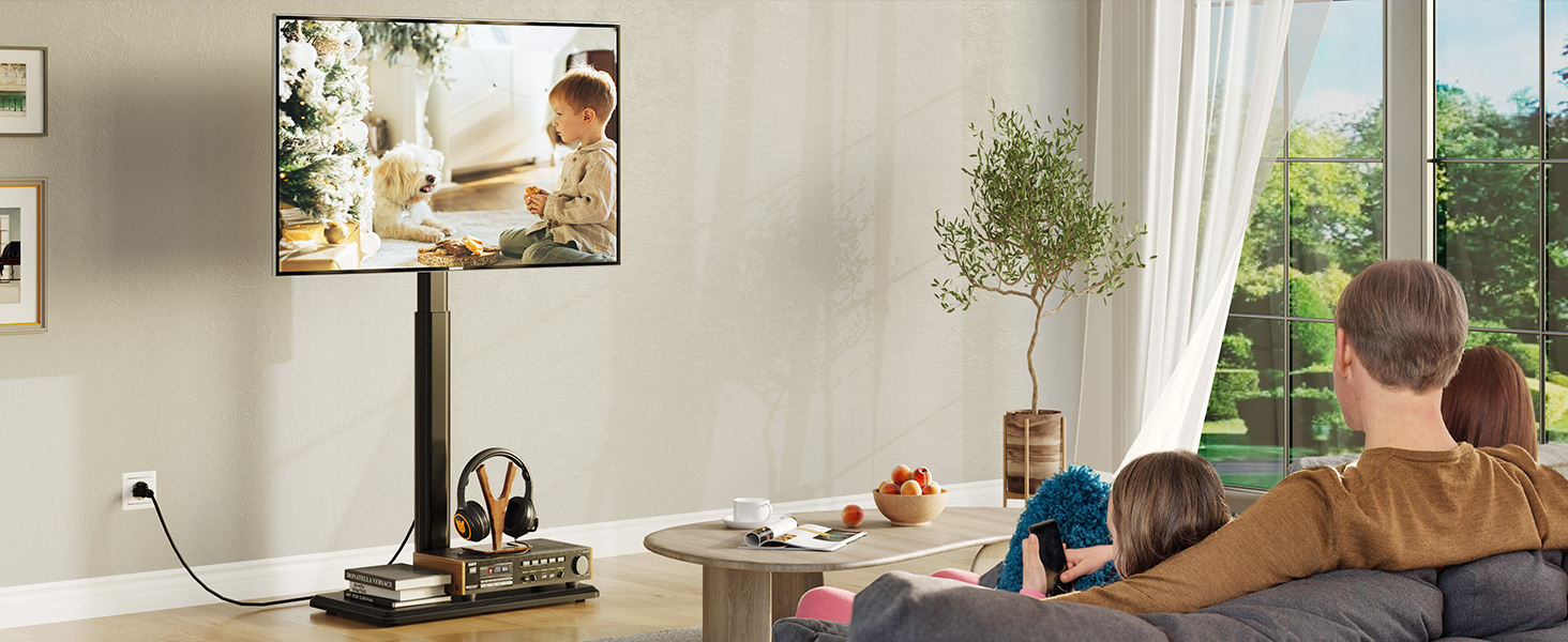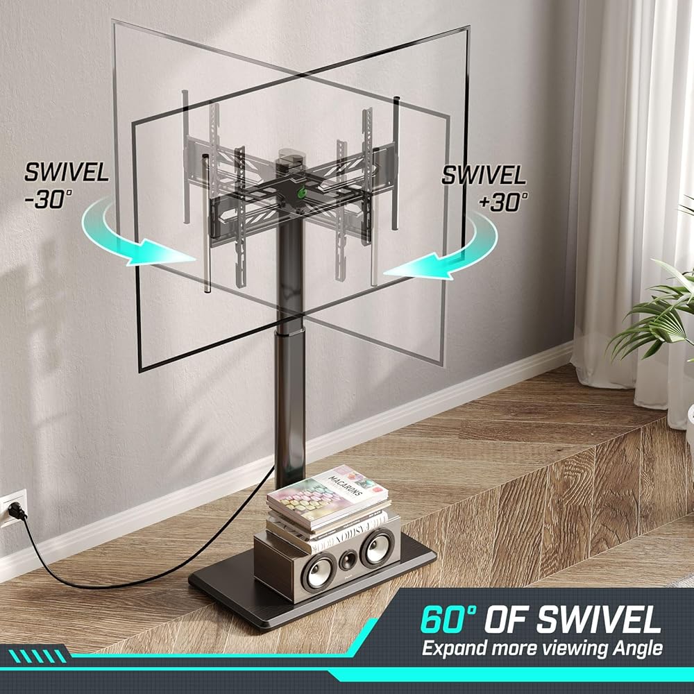 Swivel 60° for Optional Viewing: Greenstell tall TV stand is designed with the function that conveniently swivel 30° right or left. Easily change the screen direction, making watching anywhere easy in the room. Offer you the best viewing experience