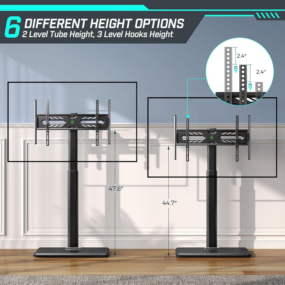 Simple Height Adjustment & Installations: Greenstell TV mount stand provides 6 height adjustments (2 for TV hooks and 3 for TV plate), you can make different height adjustments according to the size of your TV. It comes with installation instructions and the necessary accessories for quick and easy assembly
