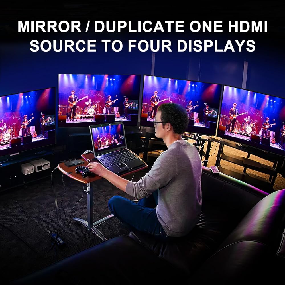 【Broad Compatibility】This HDMI 2.1 splitter is compatible with PC, PS4 Pro, PS5, Xbox Series X, Blu-Ray Player, Chromecast, MacBook, UHD TV, Projector, Monitor, etc.