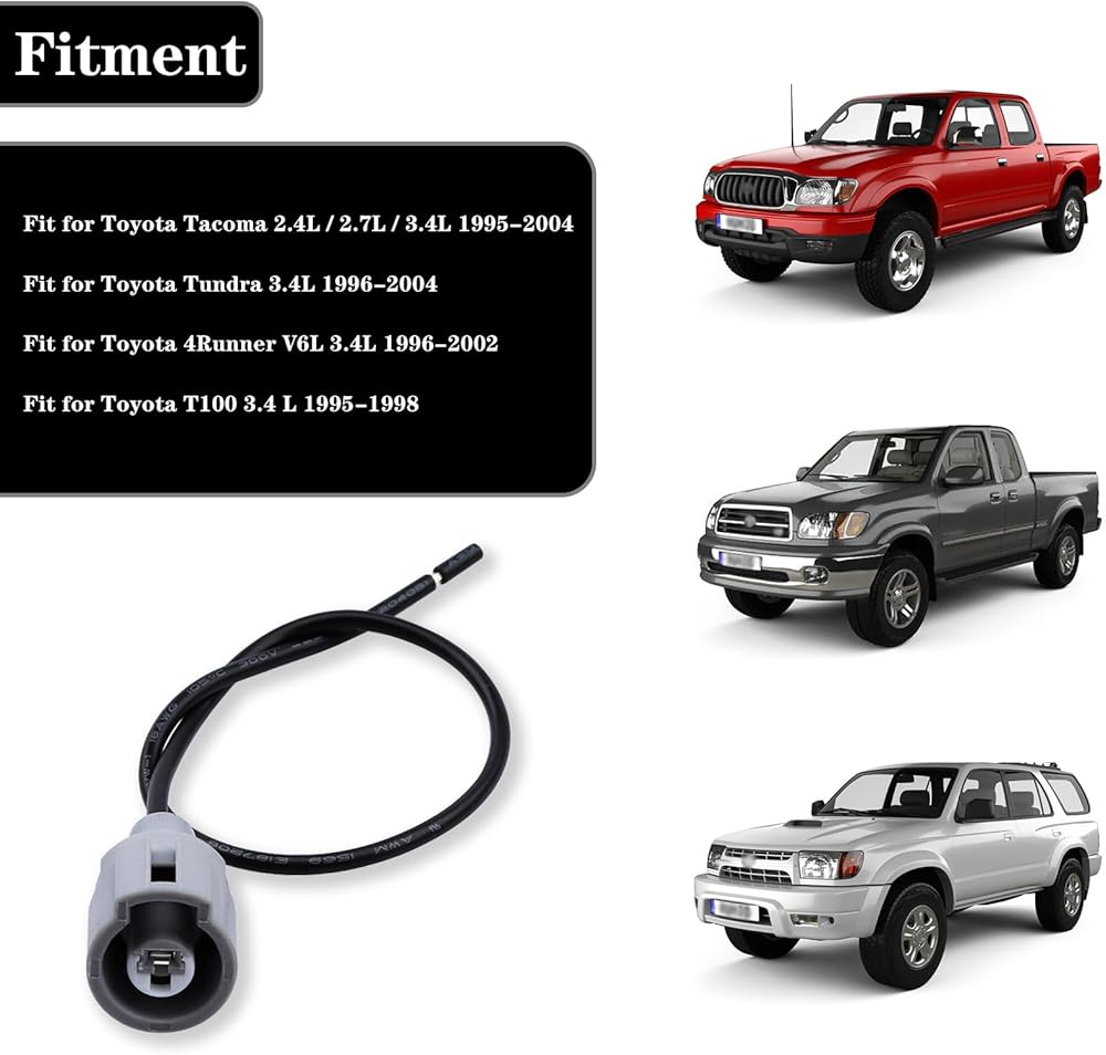 Fitment: A/C compressor plug fit for Toyota Tacoma 2.4L / 2.7L / 3.4L 1995-2004, fit for Toyota Tundra 3.4L 1996-2004, fit for Toyota 4Runner V6L 3.4L 1996-2002, fit for Toyota T100 3.4 L 1995-1998.