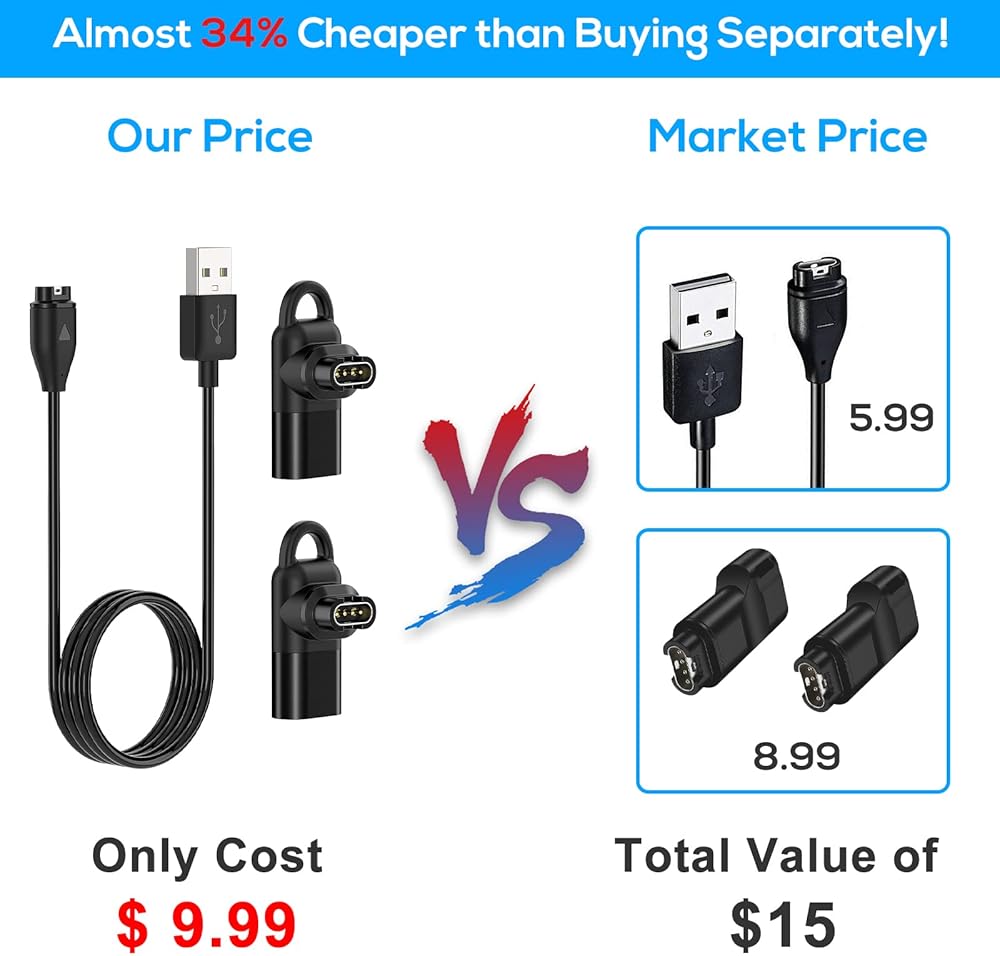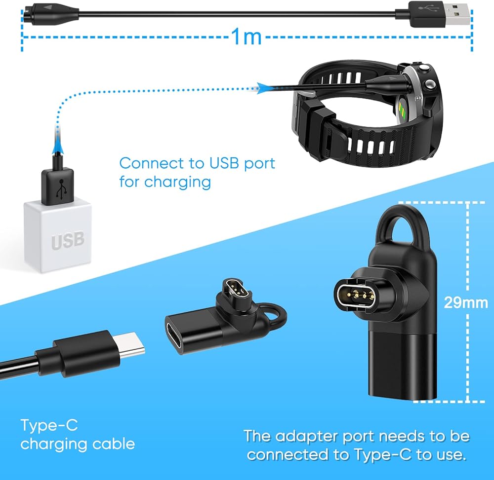 【Package Includes】1 x Charging Cable for Garmin Watch, 2 x Type C Charger Adapter. If you have any questions, please feel free to contact us. we provide high standard 24/7 customer service.