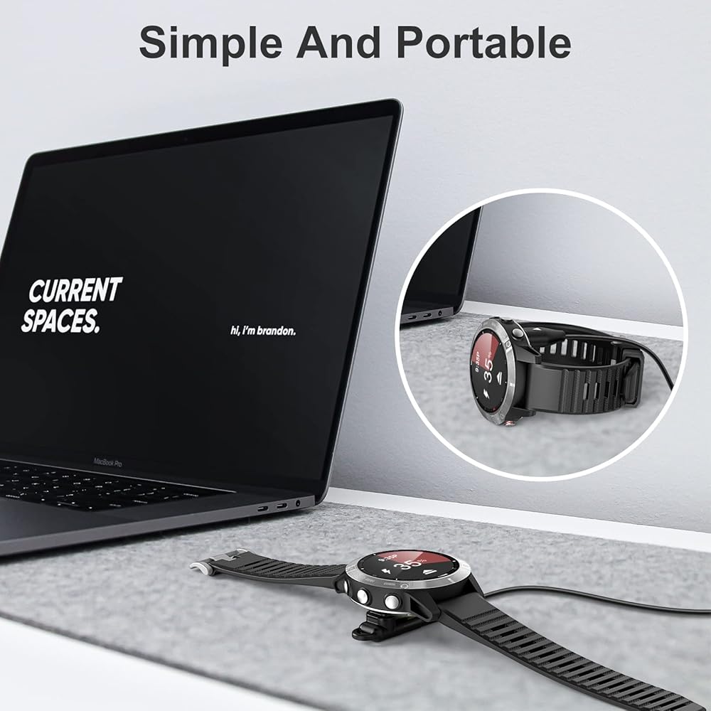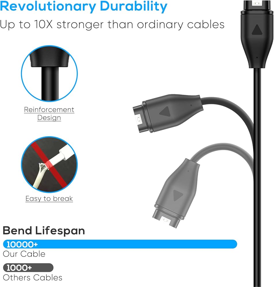 【Reinforced Durable】The charging cable for Garmin Watch with reinforced joint design, up to 10X stronger than ordinary cables, tested bending more than 10000+ times. Durable high-quality ABS + TPE material and copper wire ensure stable current output, safe and fast charging, provide excellent charging experience for your equipment.