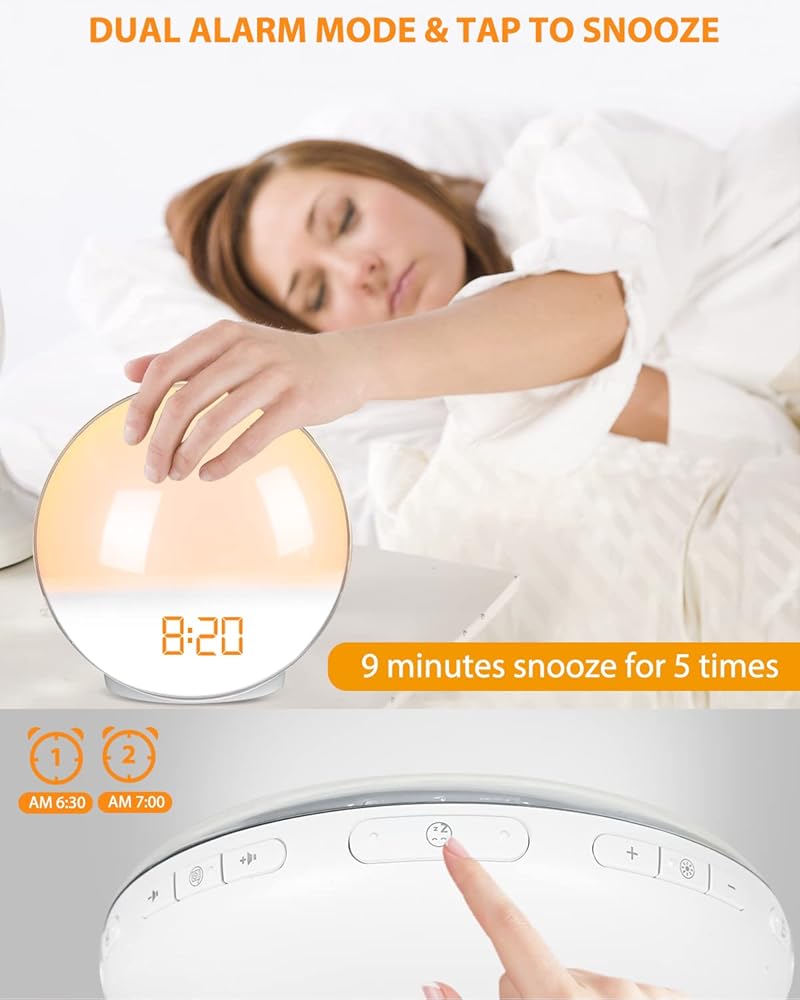 Dual Alarms & Snooze: Dual alarms provides more flexible alarm settings and scenario applications, such as weekdays and weekends. Pressing the snooze button to gain an additional 9 minutes of sleep. You can snooze for unlimited times without worrying the alarm not going off again.