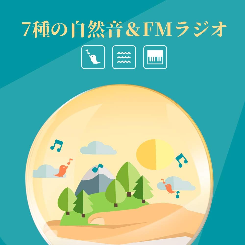 【FM Radio Clock & 7 Nature Sounds】7 natural sounds alarm clock [piano music, windbell, stream sound, bird singing, soft music, waves, beep] which let you revel in the sounds of nature.You can also wake up with your favorite FM radio. Long press the FM button for 2 secs and it will star and automatically scan all stations.