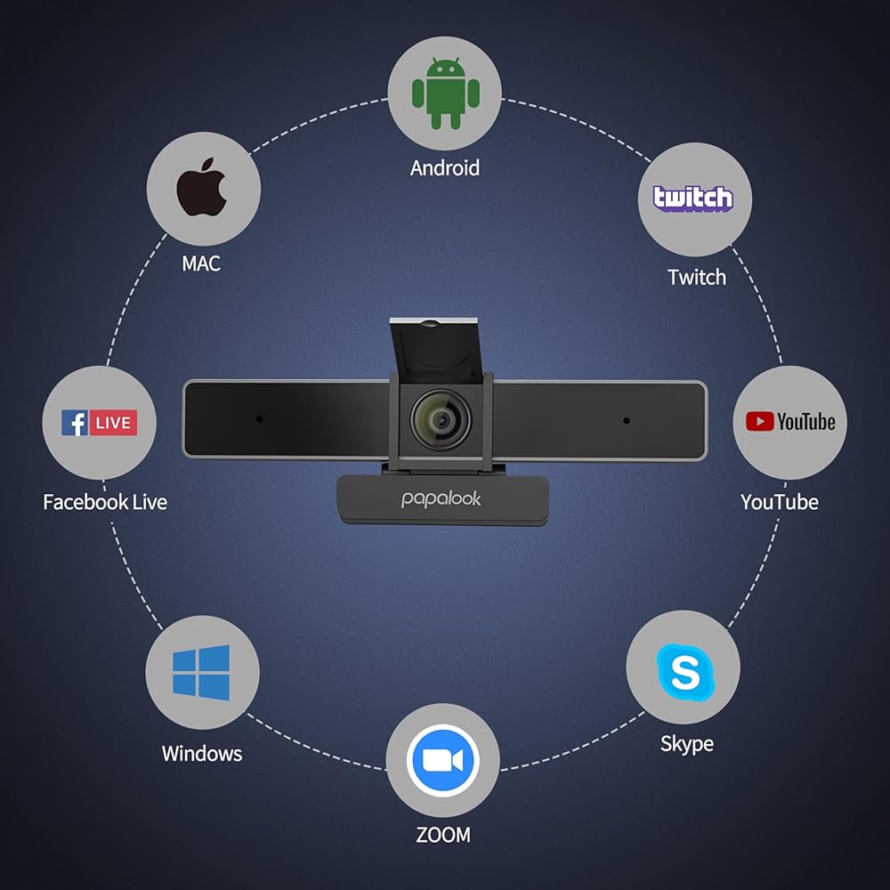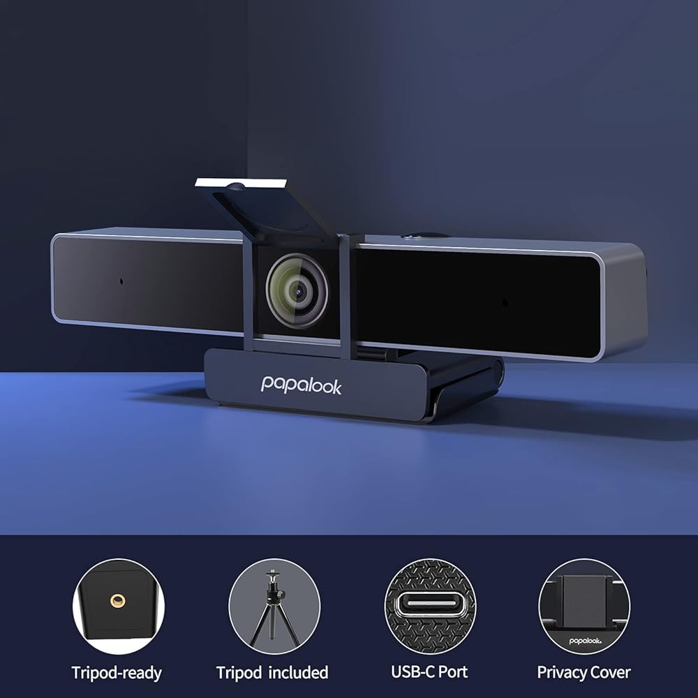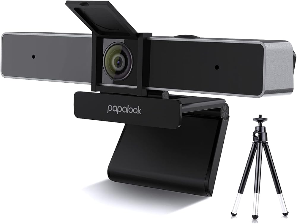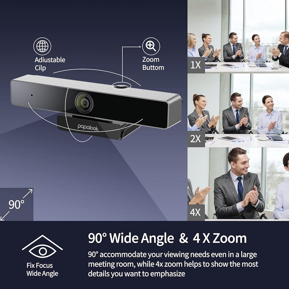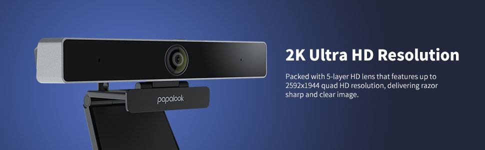 papalook 2022 2K Ultra HD Zoomable Webcam with Dual Microphone, Fixed Focus Web Camera with Tripod and Privacy Cover, 90° Wide-Angle View for Desktop/Laptop/Mac, Work with Skype/Zoom/WebEx/Lync