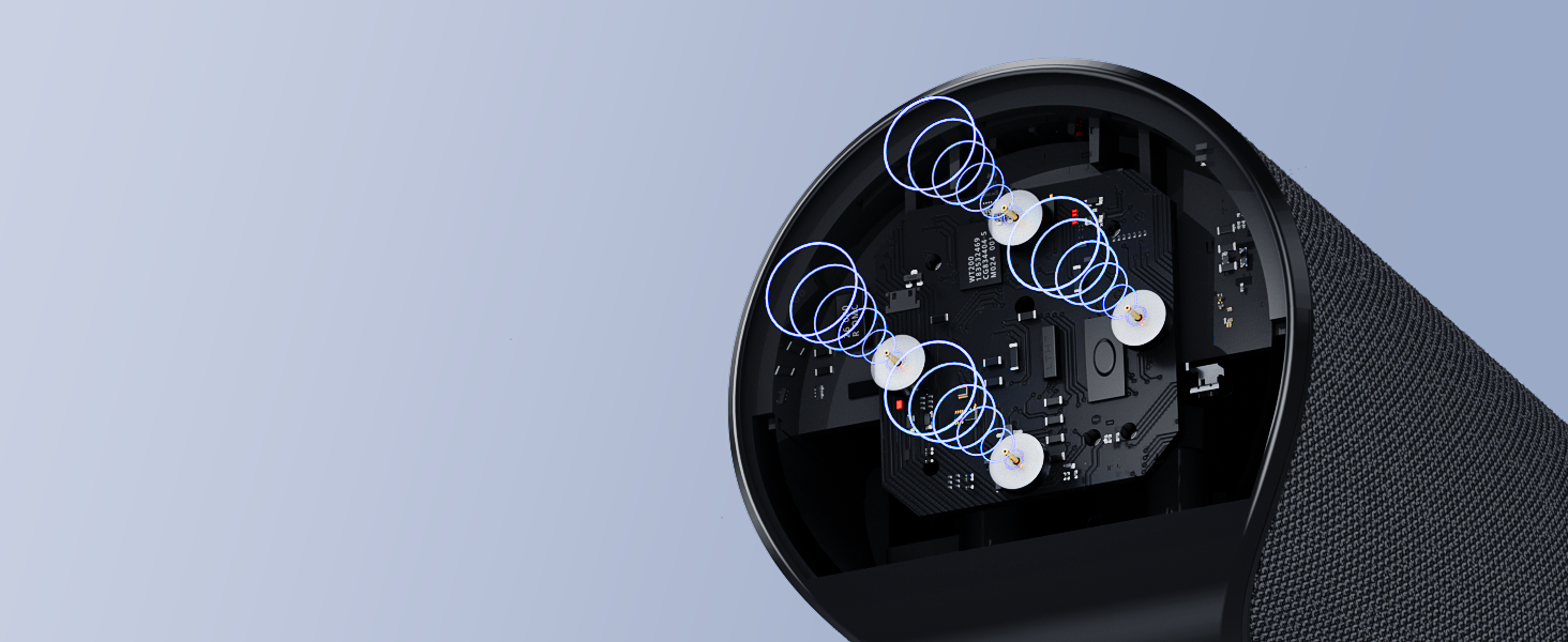 Excellent Microphone - AIRHUG 04 has four microphones which sensitively pickup your voice within 6 ft.The four integrated omnidirectional microphones capture high quality sound with noise cancellation, gain control and echo reduction integrated to provide a clear voice signal. The audio is clear and perfect for the purposes of vocal clarity. This works great for those who sit around a table during a meeting and have multiple people talking, do not need to move the microphone.