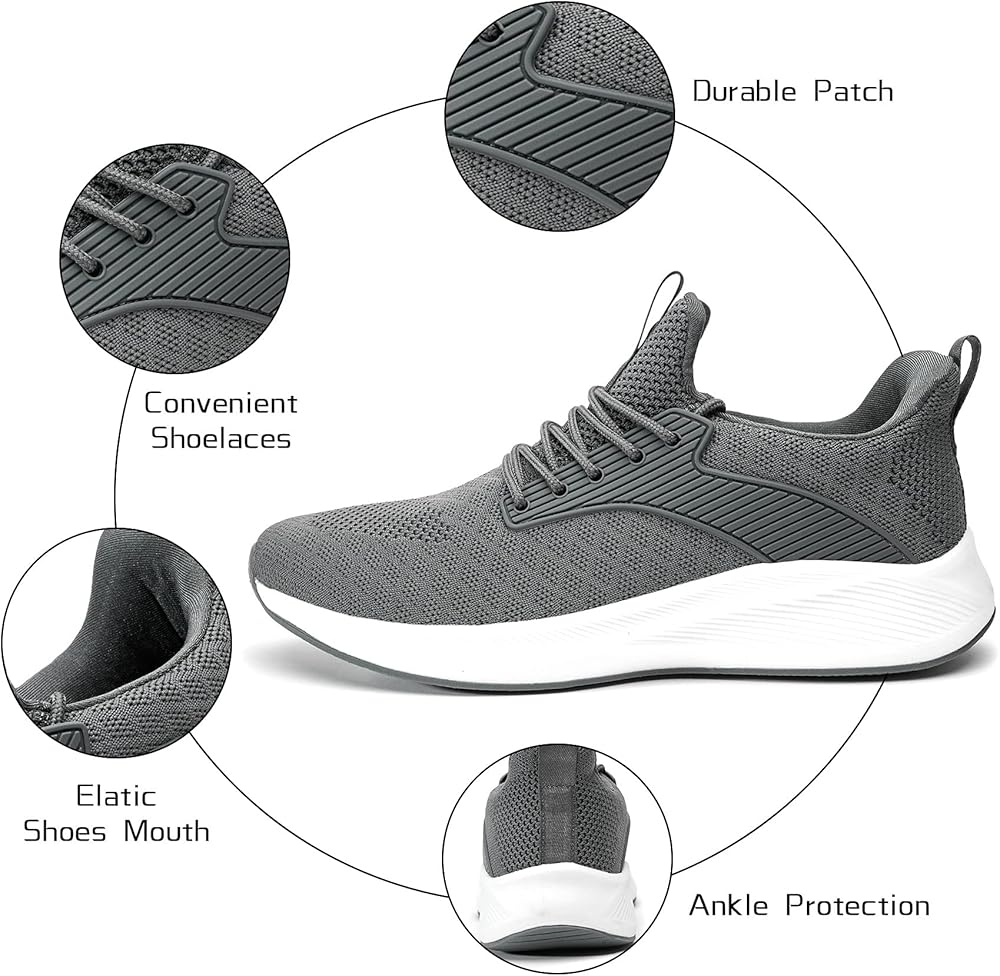 Breathable Mesh Upper: The mens walking shoes used knitted upper with stretch mesh allows your feets more comfortable.