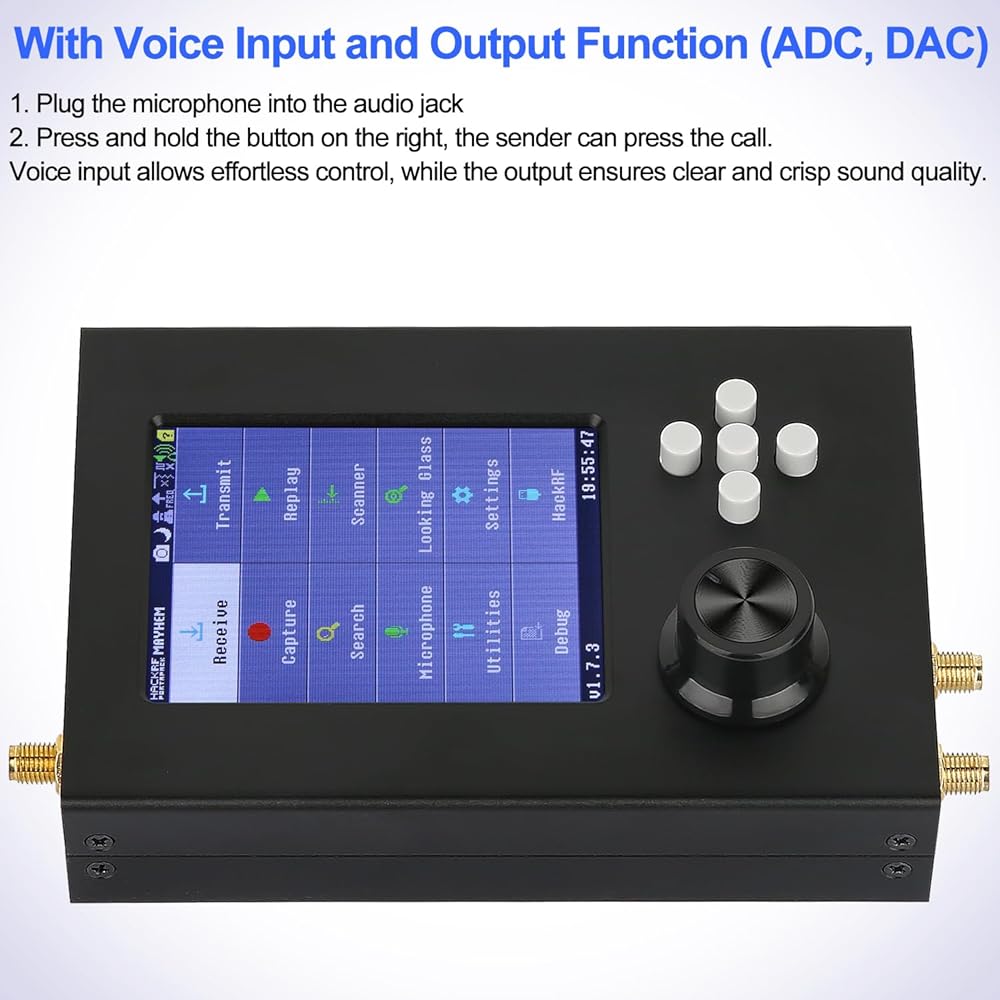 1. Versatile Compatibility: This assembled SDR radio features a 5mm audio jack that can be used as a standard configuration for Portapack. It allows for seamless communication with voice intercom radios, making it a versatile tool.With the capability to serve as a one touch communication device, this product offers convenience and ease of use. Additionally, the compact size and practical microSD card slot provide convenient storage for data and codes.