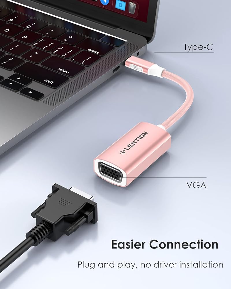 LENTION VGA to USB C Adapter, Portable USB to VGA Adapter for Monitor Compatible with 2025-2016 MacBook Pro 13/15/16, New iPad/Surface, iPad, Chromebook, Phone(CU606, Rose Gold)