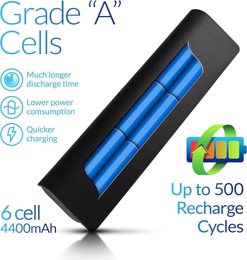 • HIGH QUALITY COMPONENTS & 12 MONTH WARRANTY: Our spare laptop batteries are assembled from top quality material and circuit boards to ensure durability and performance. We only use grade A battery cells that provide up to 500 charging cycles. We're so confident in the performance of our replacement laptop batteries that we're including a 12-month warranty with every single purchase.
