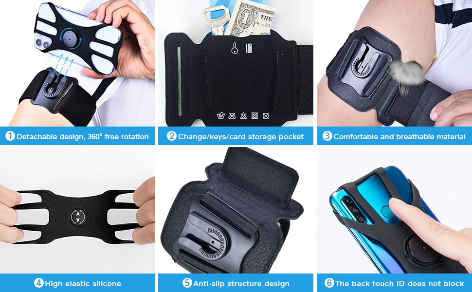 【UPGRADED HUMANIZED DESIGN】Don't worry about losing your small important items while running or exercising. With this phone running holder, you can easily store the headphone cable in it. And the built-in hidden pocket allows you carrying your house key, ID, credit card & cash.