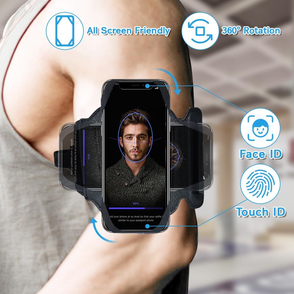 【FULL FUNCTIONS ACCESS】 This armband cell phone holder supports complete access to the screen, touch and control the phone without taking it out. You can quickly switch your music playlist, adjust the volume, answer your call, check emails and press your timer stop button.
