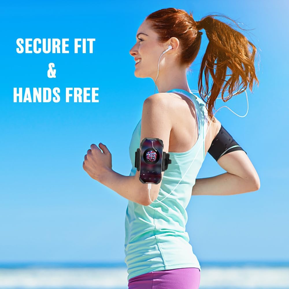 【SKIN-FRIENDLY & FIT FOR MOST ARMS】 Breathable high quality materials provide you a soft, odor-free and lightweight wearing experience. This cell phone armband has highly elastic strap that fits most of arms to enjoy a safe and comfortable fit. For arm sizes: 9.5-16", perfect for running, walking, jogging or gym workout.