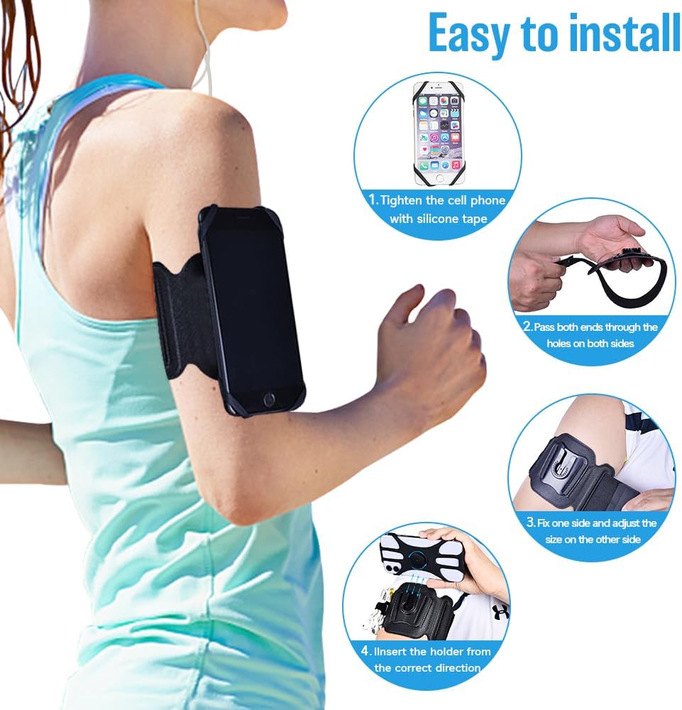 【PERFECT PARTNER FOR EXERCISE】 This gym phone holder is very easy to use, you can quick freely to install and remove the phone and armband. Also it can 360 °rotation that allows you to adjust any angle what you like. If you have any questions with our phone holder for running, please feel free to contact us.