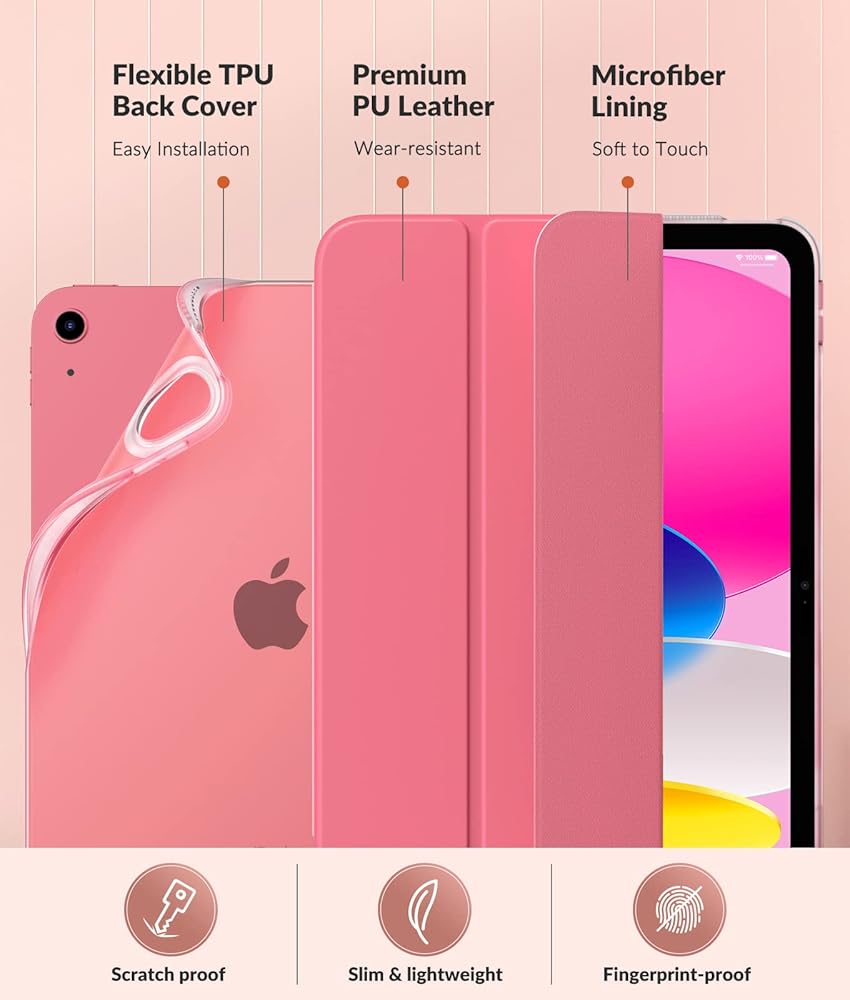 MoKo Case for New iPad (A16) 11th Generation 2025/ 10th Generation 2022, iPad 11 inch/ 10.9 inch Case with Soft TPU Translucent Frosted Back Cover, Auto Wake/Sleep, Support Touch ID, Watermelon