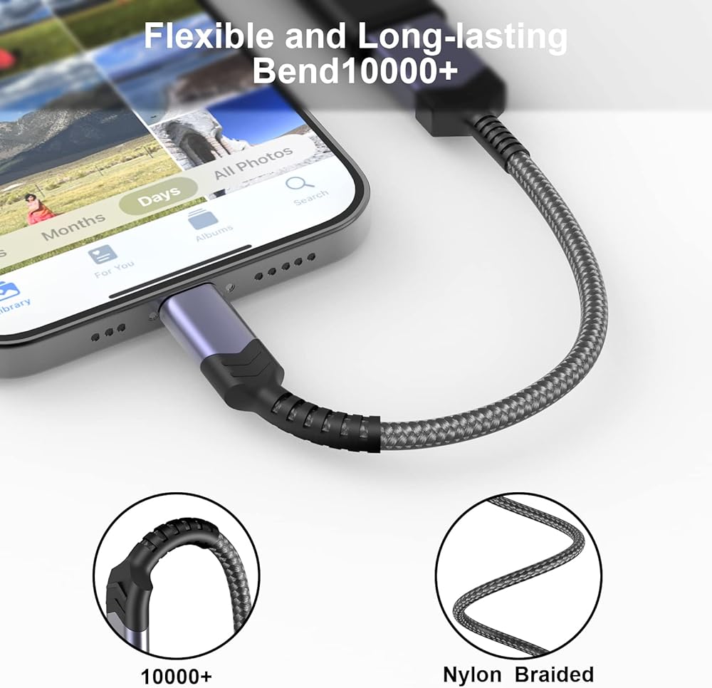 💚【Durable Nylon Braided】: With tangle-free nylon braided material and wear-resistant aluminum shell, this Lightning OTG cable is far more dependable to ensure stable and fast data transferring. It also adds additional durability and is durable for a longer lifespan.