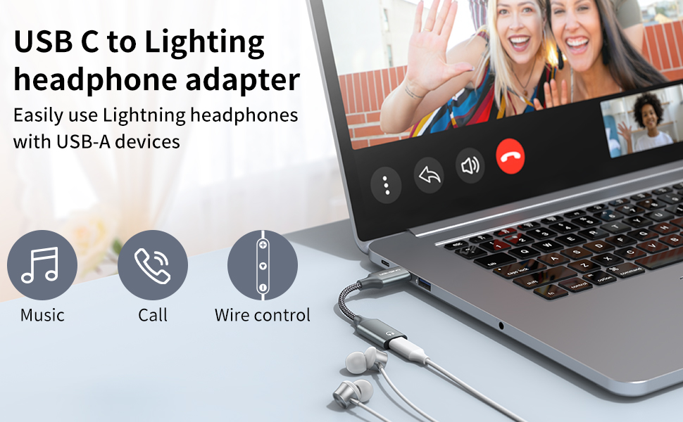 【Microphone + In-line Control】: Use your lighting headphones with any computer's USB A port, This headphone jack supports talking over the mic and in-line control including pausing music, skipping tracks, adjusting volume.
