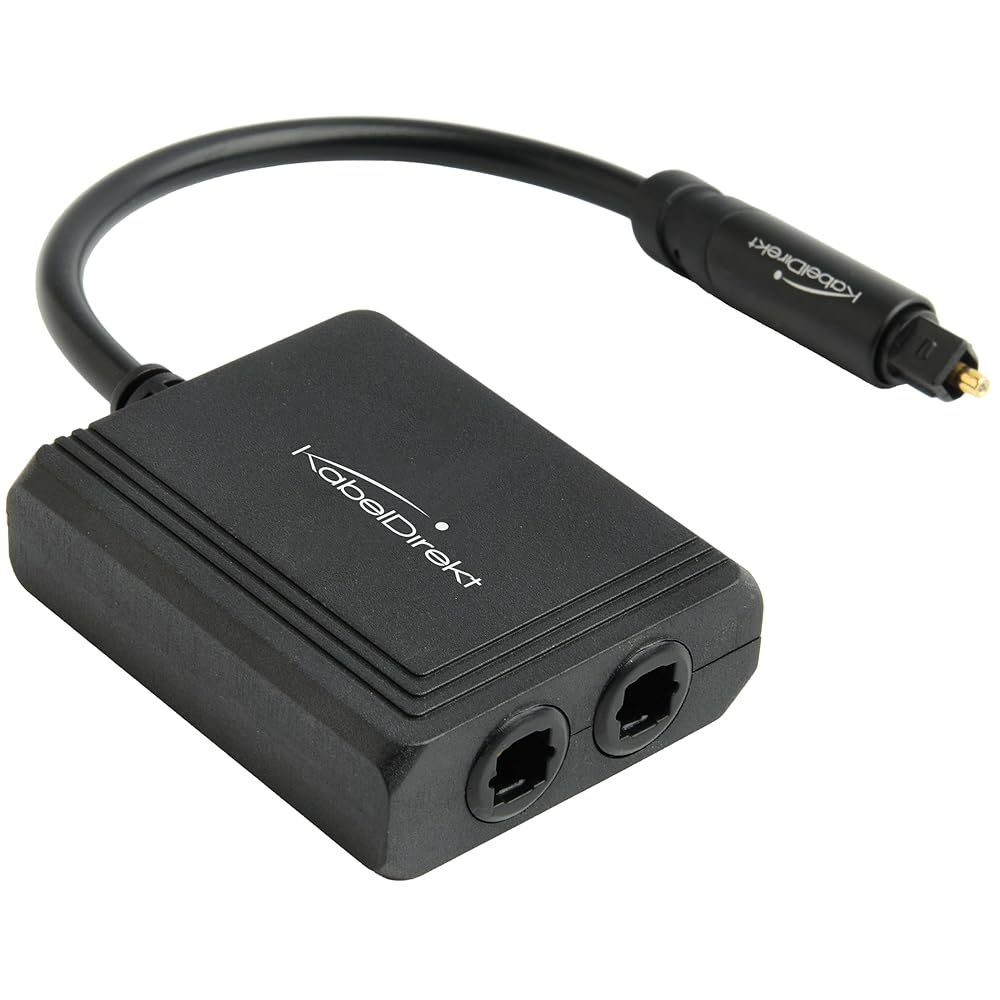 KabelDirekt Optical Audio Splitter – 1 in 2 Out Toslink Optical Splitter for SPDIF Digital Audio (Connects One Source to Two Devices: Soundbar, TV, Hi-Fi System, Amplifier)