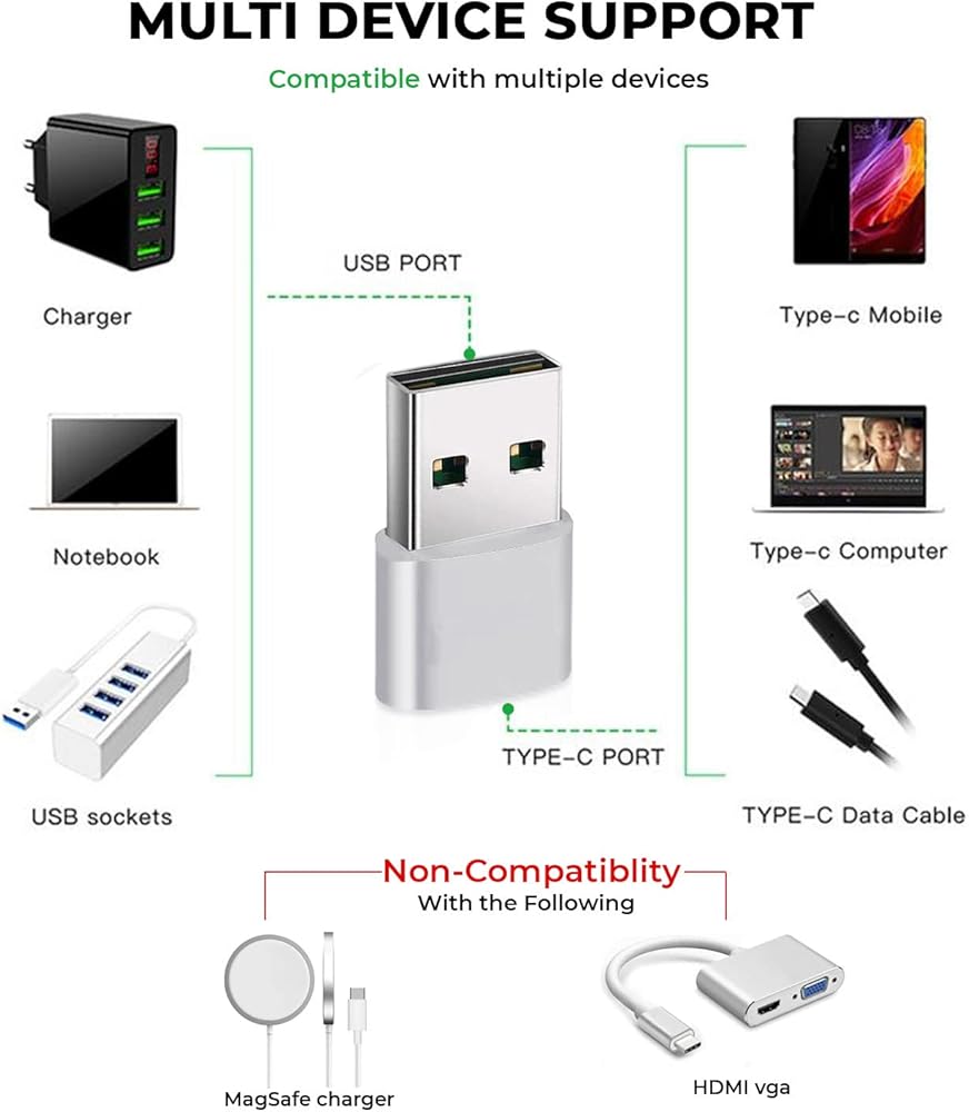 👉 USB 2.0 to Type-C Adapter is Compatible with Iphone 13/12/12pro/mini/ iPad Air 4/iPad Pro 2020/MacBook Pro 2019/2018/2017, Airpods iPad 8th Air 4th Generation, and for Samsung Galaxy Note20/10, S20 S10 S9 S8 A11 A20 A21S A30 A40 A41 A50 A51 A70 A71 A80 A90, Google Pixel 3/2/2XL, ChromeBook Pixel, Nokia N1 Tablet, Google Nexus 5X/6P and other type-c devices to a Acer/HP/Dell/Asus computer laptop or USB A wall/car charger.