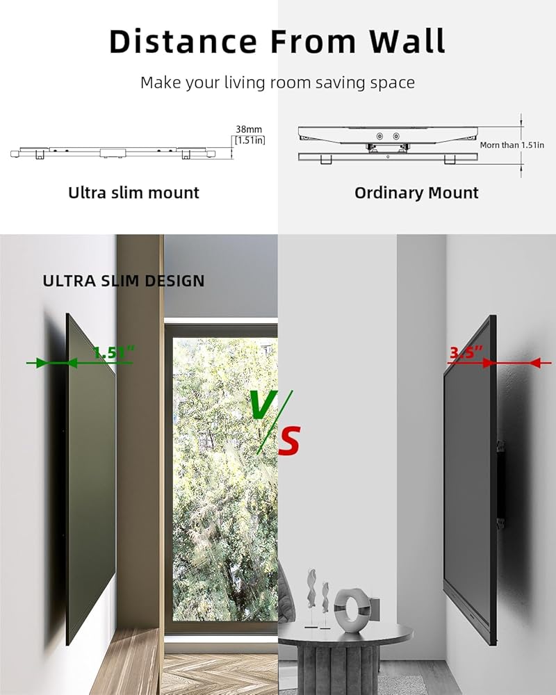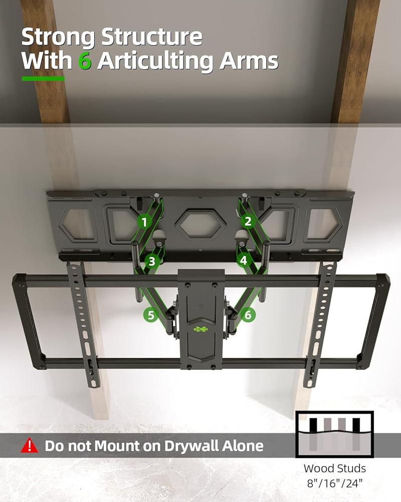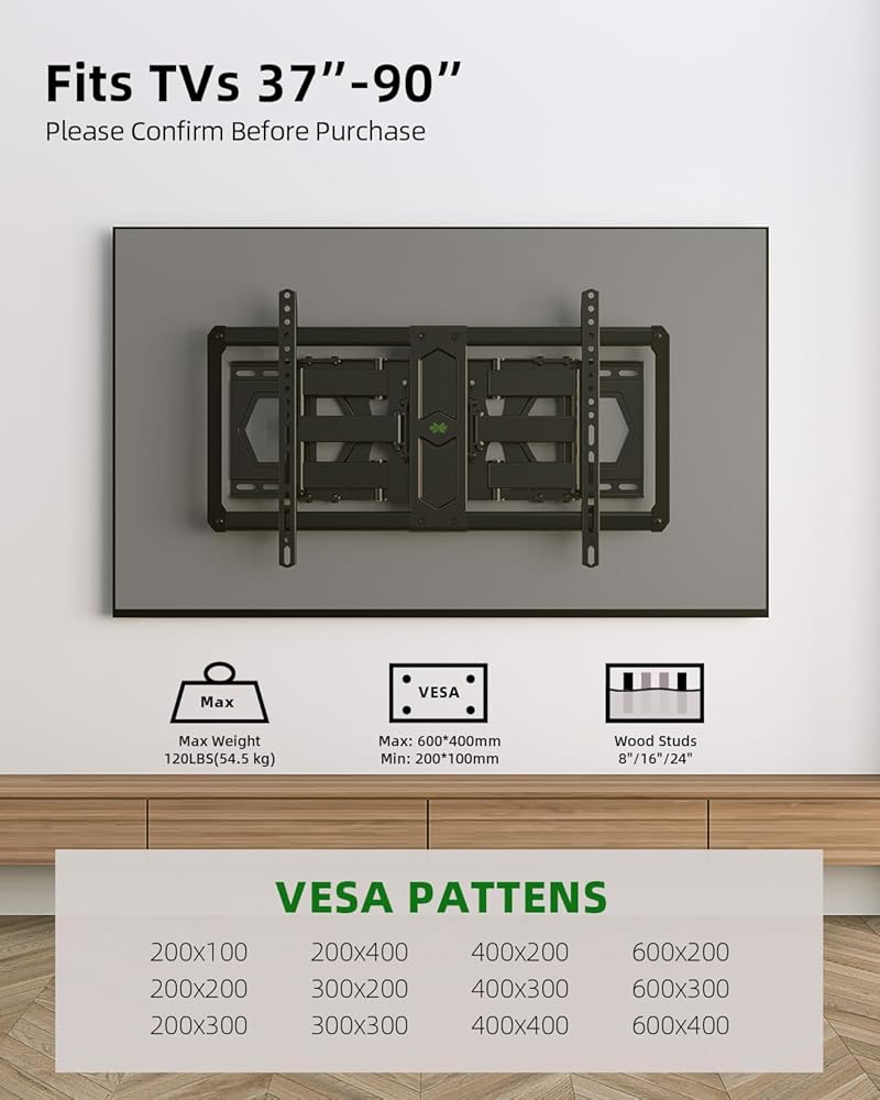 ✅ [Space Saving] This full-motion TV wall mount can pull out 11.96 inches and retract 1.49 inches, with a maximum weight of 120 pounds, saving you valuable space and making your house look neater.