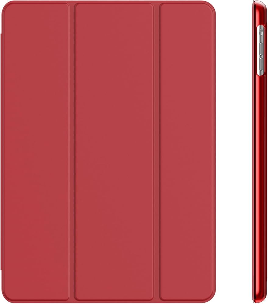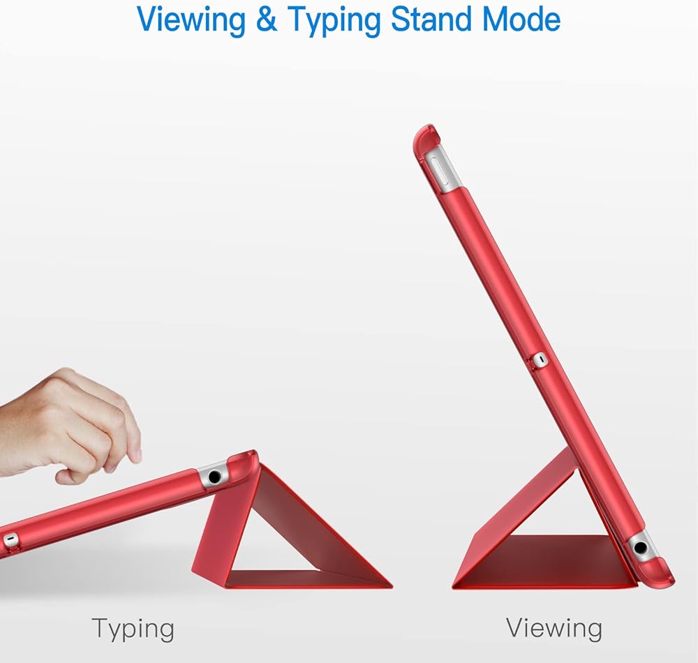 Magnetic smart cover supports automatic sleep/wake function.The tri-fold front cover can support iPad in two standing position for viewing and typing
