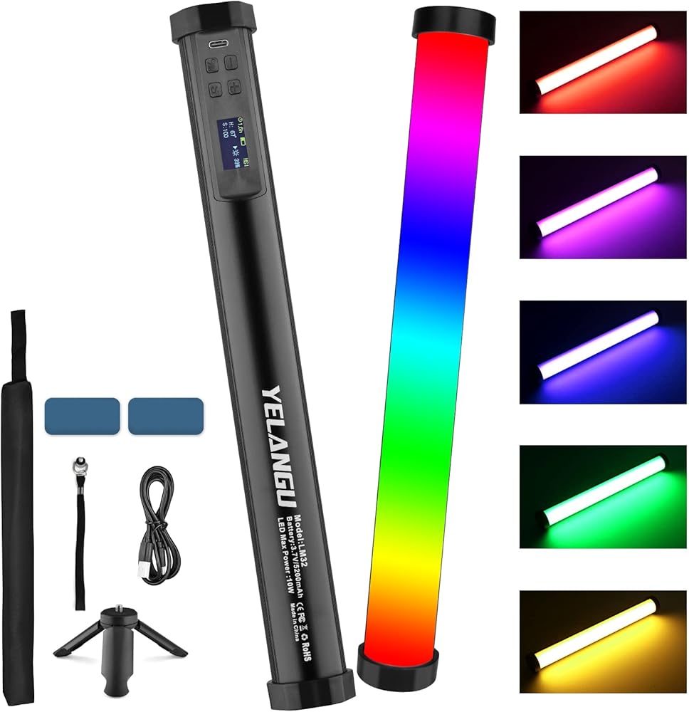 【5200mAh Rechargeable Battery】This tube lights has a built-in 5200mAh rechargeable battery.Full power output for 2 hours, the longest battery life is 12 hours.there is no need to worry about battery problems during shooting. Equipped with type-c charing port on back of led tube light, simply charge with the usb cable (package included)