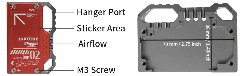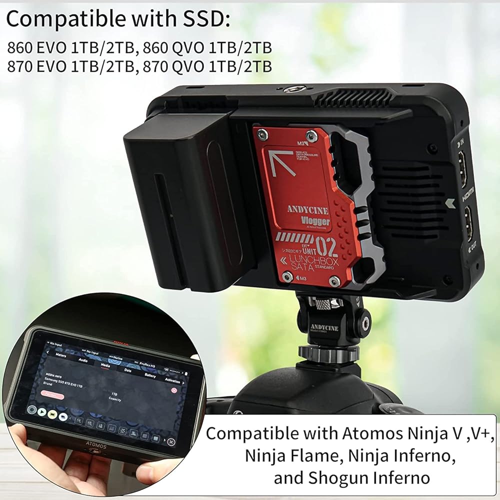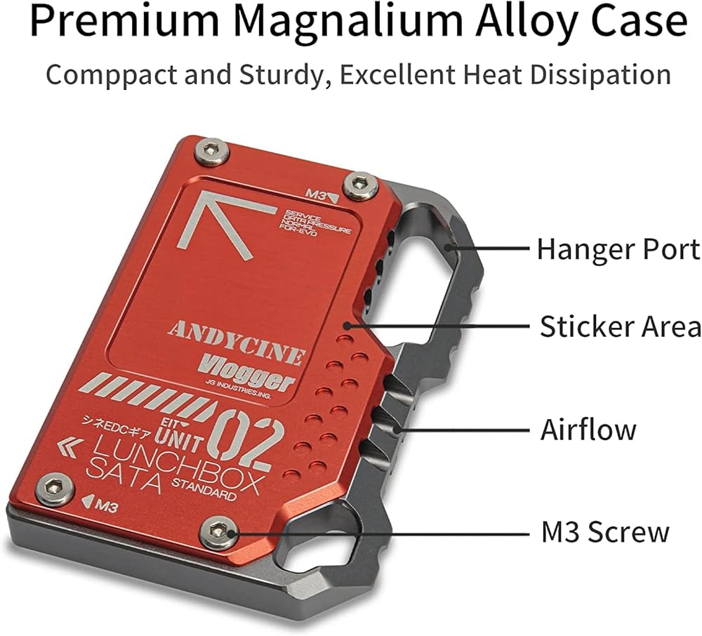 ANDYCINE Lunchbox Red Magnalium Case for DIY SSD Compatible for Sumsung 860/870 1TB/2TB Compatible with Atomos Ninja V,V+, Ninja Flame, Ninja Inferno, and Shogun Inferno