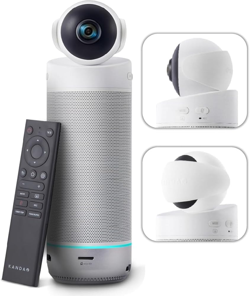 [Crystal-Clear Video & Audio] - With 2*220 degree fisheyes lenses, KanDao meeting 360 8K 360° video conference camera captures every detail in stunning 1080P resolution. 8 omnidirectional microphones pick up voices to 18ft away, filter out background noise and echo, and deliver crystal-clear audio.